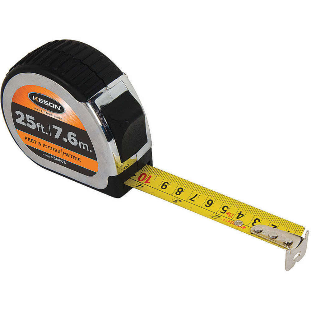 KESON PG18M25 Tape Measure 1 Inch x 25 Ft/7.5m Chrome/black