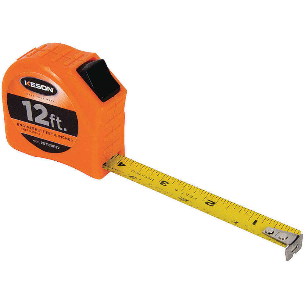KESON PGT181012V Tape Measure 5/8 Inch x 12 Feet Orange In/ft