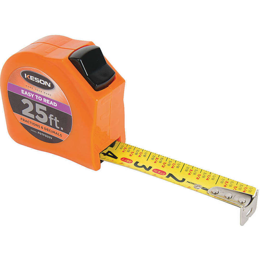 KESON PGTFD25V Tape Measure 1 Inch x 25 Feet Orange In./ft.