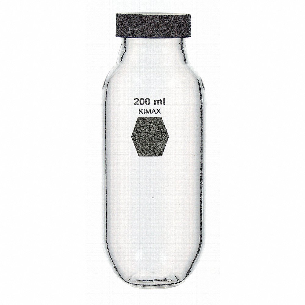 KIMBLE CHASE 14720-200 Bottle, Glass, 200 mL, 6.76 fl oz, 60 mm Body Dia, Non-Sterile, Storage