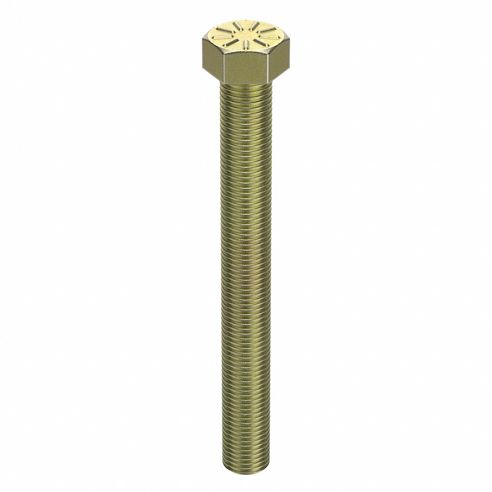 L9 440320 452G24 Hex Head Cap Screw, 7/16 In - 20 Thread Size, Steel, 4 In Lg., Gr. 9, Yellow Zn Plated