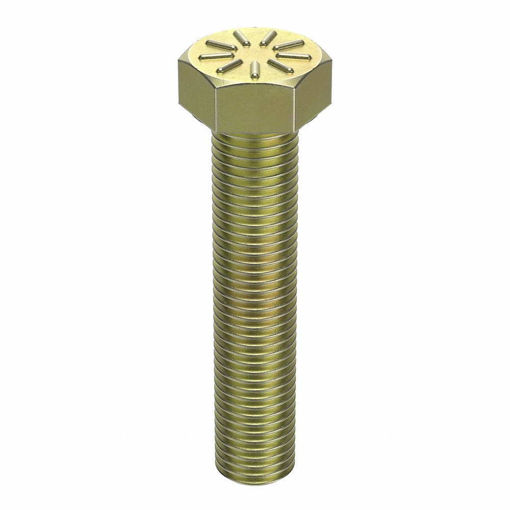 L9 440666 452H42 Hex Head Cap Screw, 7/8 In - 9 Thread Size, Steel, 4 In Lg., Gr. 9, Yellow Zn Plated