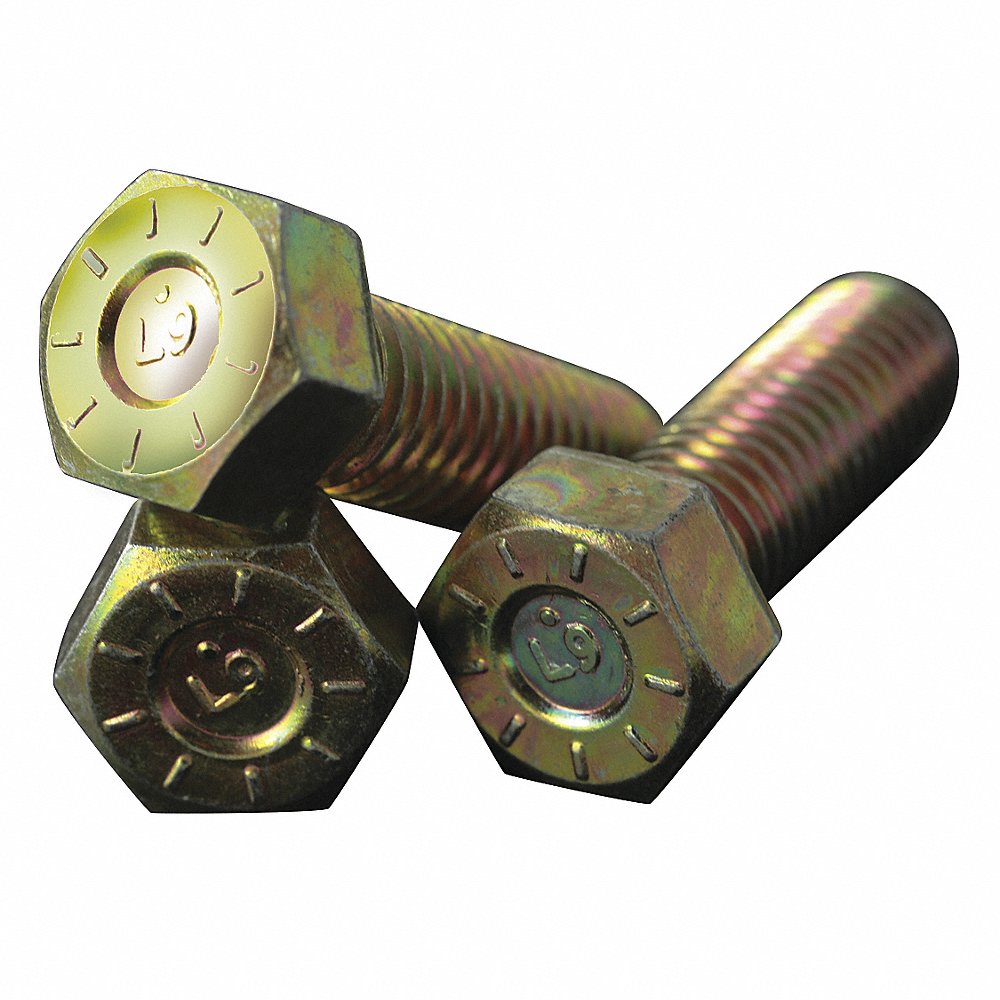 L9 440964 452J63 Hex Head Cap Screw, 1 1/2 In - 12 Thread Size, Steel, 8 In Lg., Gr. 9, Yellow Zn Plated