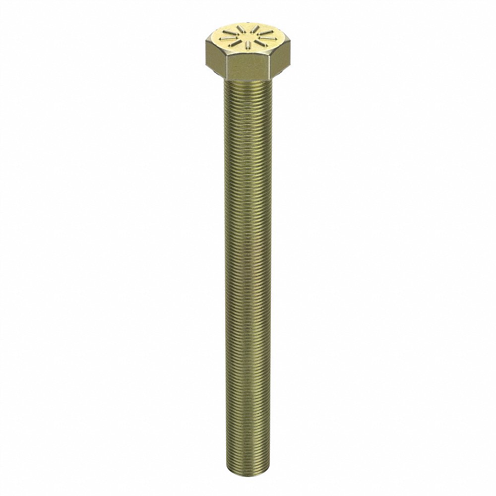 L9 440970 452J65 Hex Head Cap Screw, 1-14 Thread Size, Steel, 9 In Lg., Gr. 9, Yellow Zn Plated