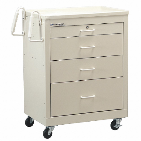 LAKESIDE MANUFACTURING BV03 Bedside & Nurse Server Cart, Steel, Swivel/ Swivel with Brake, Beige, Light Tan