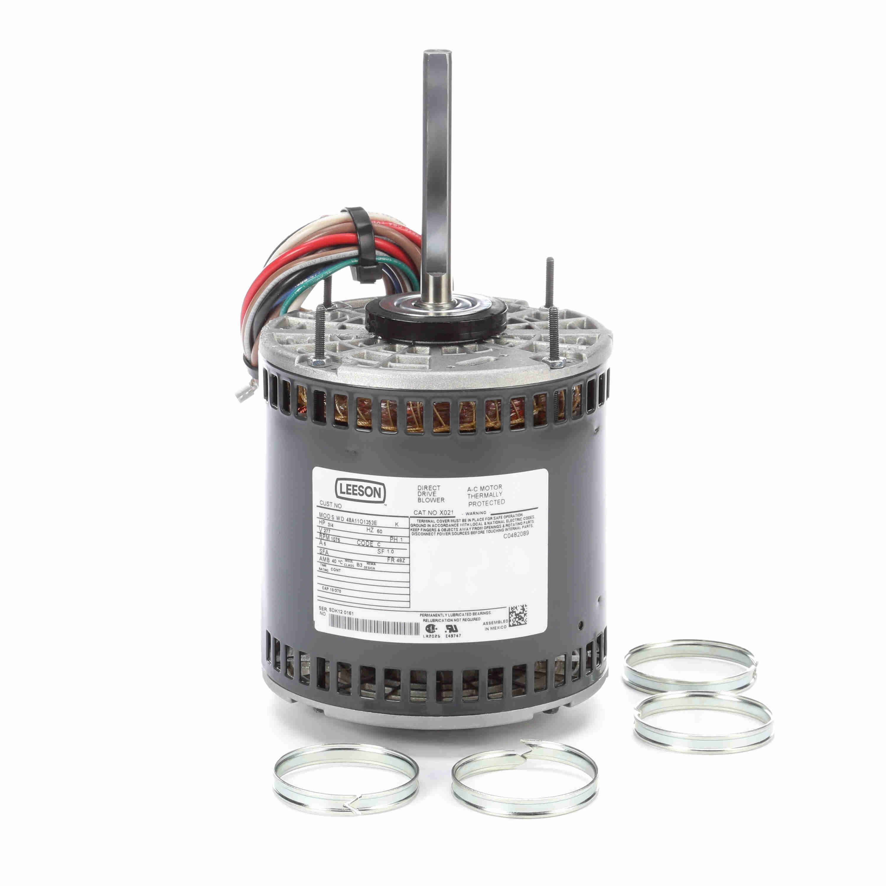 LEESON 048A11O1353 48A11O1353E / X021 Fan and Blower Motor, 0.75 HP, 1 Phase, 60 Hz, 277V, 1200 RPM