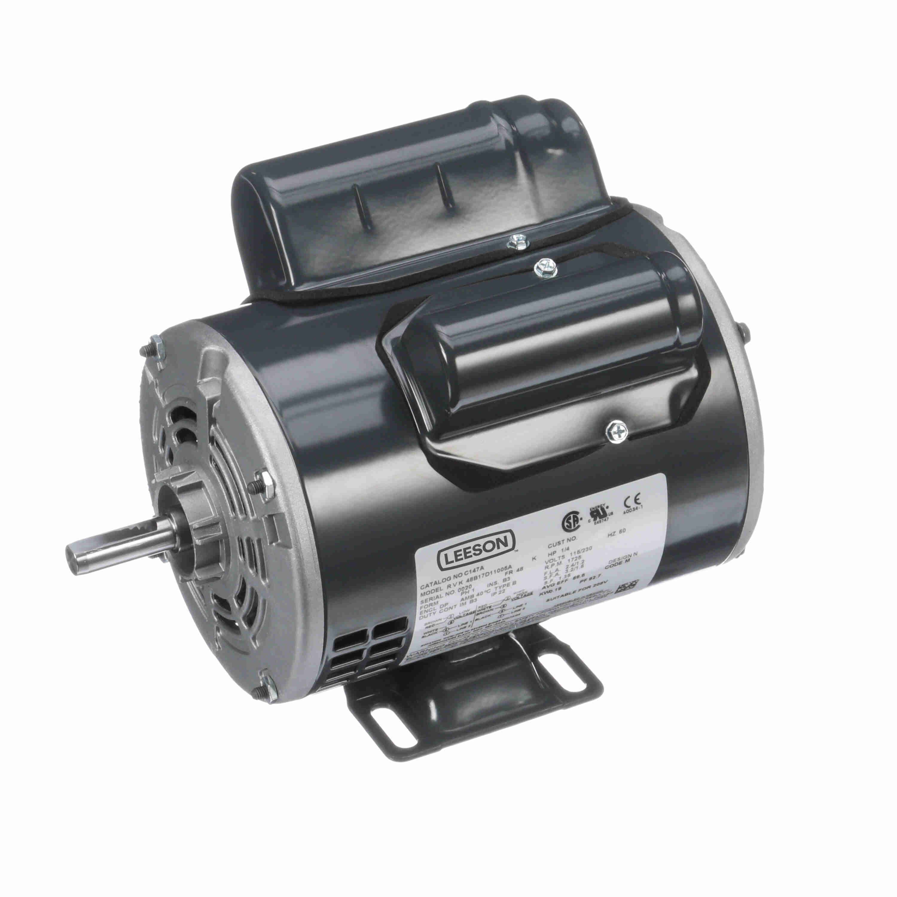 LEESON 048B17D11005 48B17D11005A / C147A AC Induction Motor, General Purpose, 1/4Hp, 1-Phase, 115/230 VAC, 1800 rpm, 48 Frame