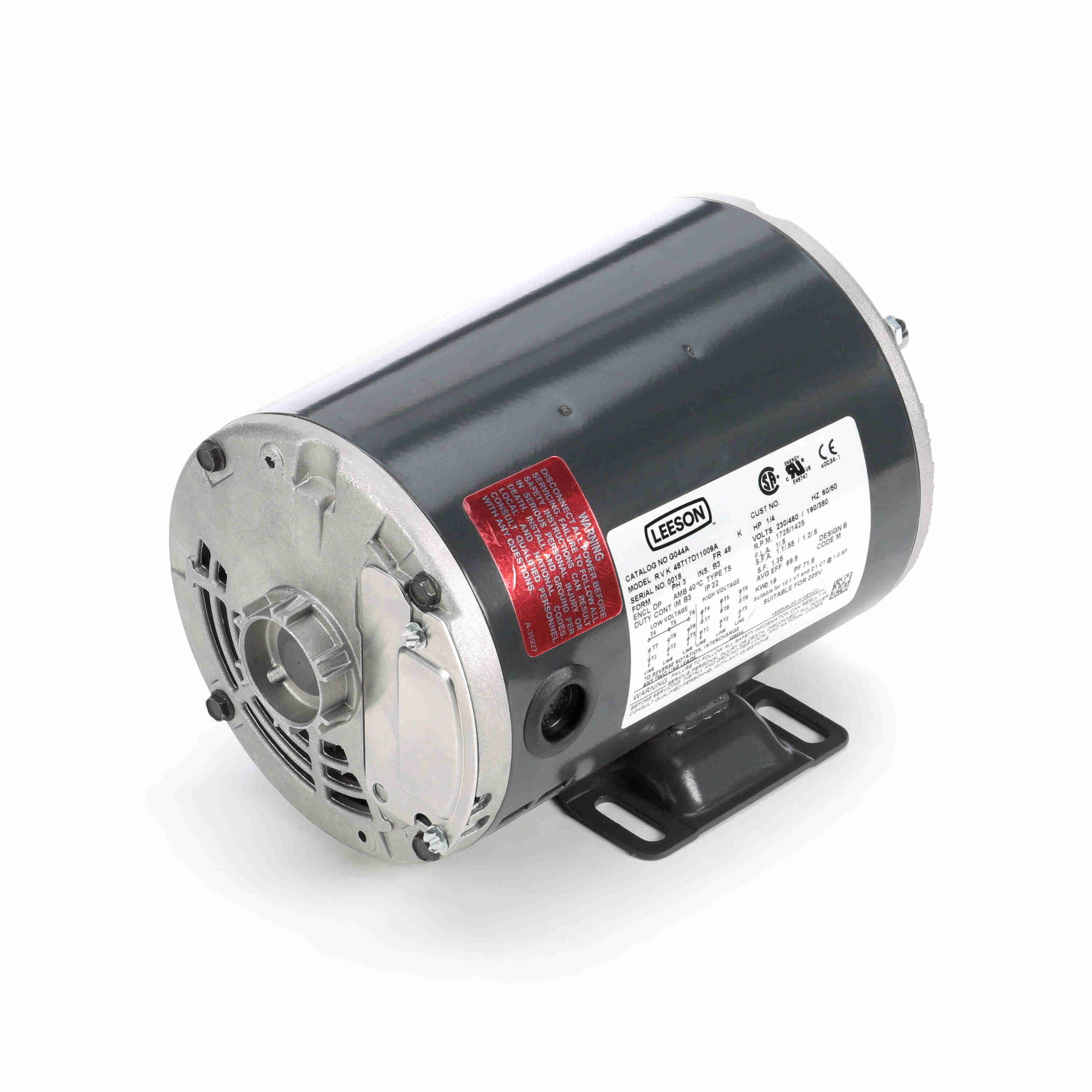 LEESON 048T17D11009 48T17D11009A / G044A General Purpose Motor, 0.25 HP, 3 Phase, 60/50 Hz, 230/460 and 190/380V, 1800 and 1500 RPM