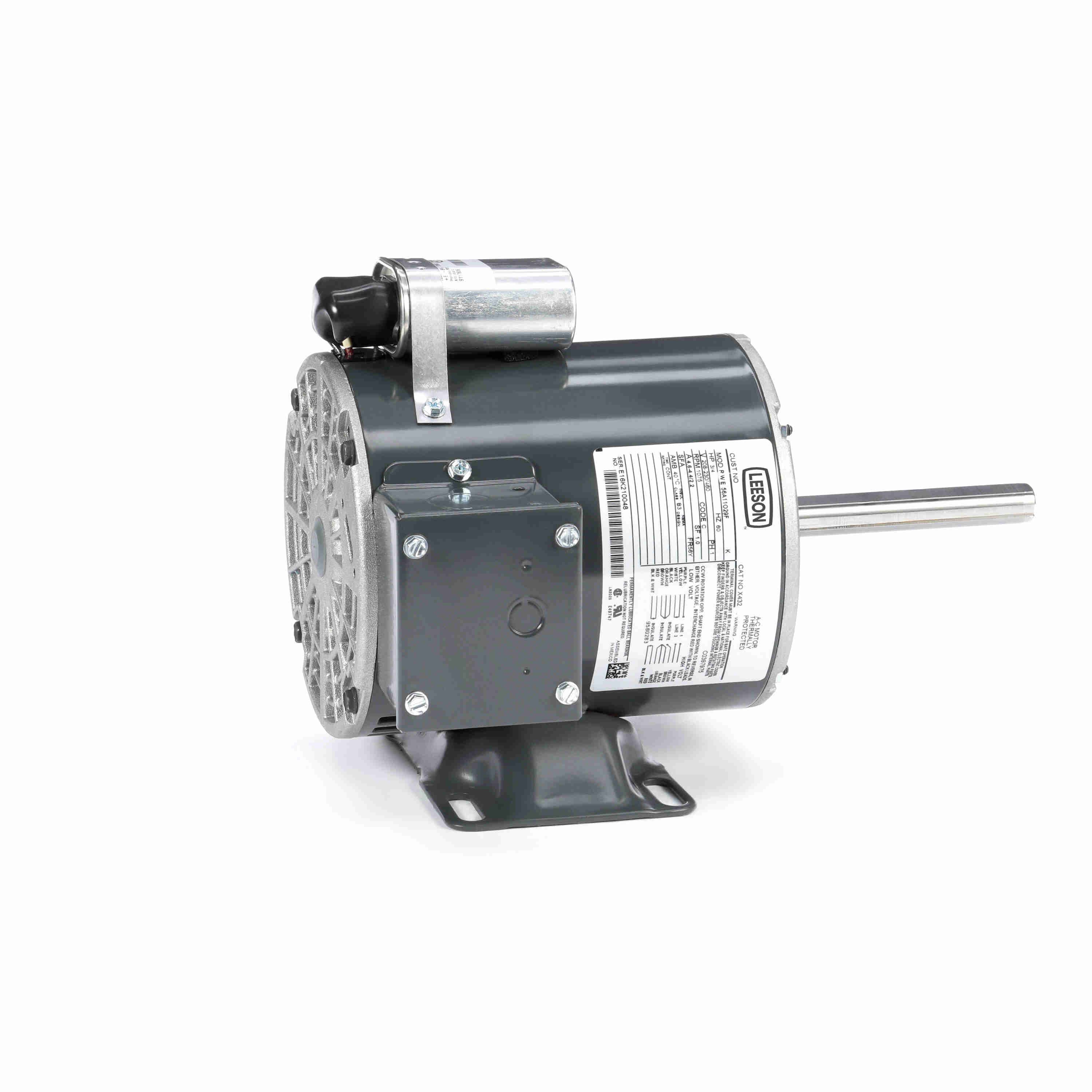 LEESON 056A11O29 56A11O29F / X432 Condenser Fan Motor, 0.75 HP, 1 Phase, 60 Hz, 208-230/460V, 1200 RPM