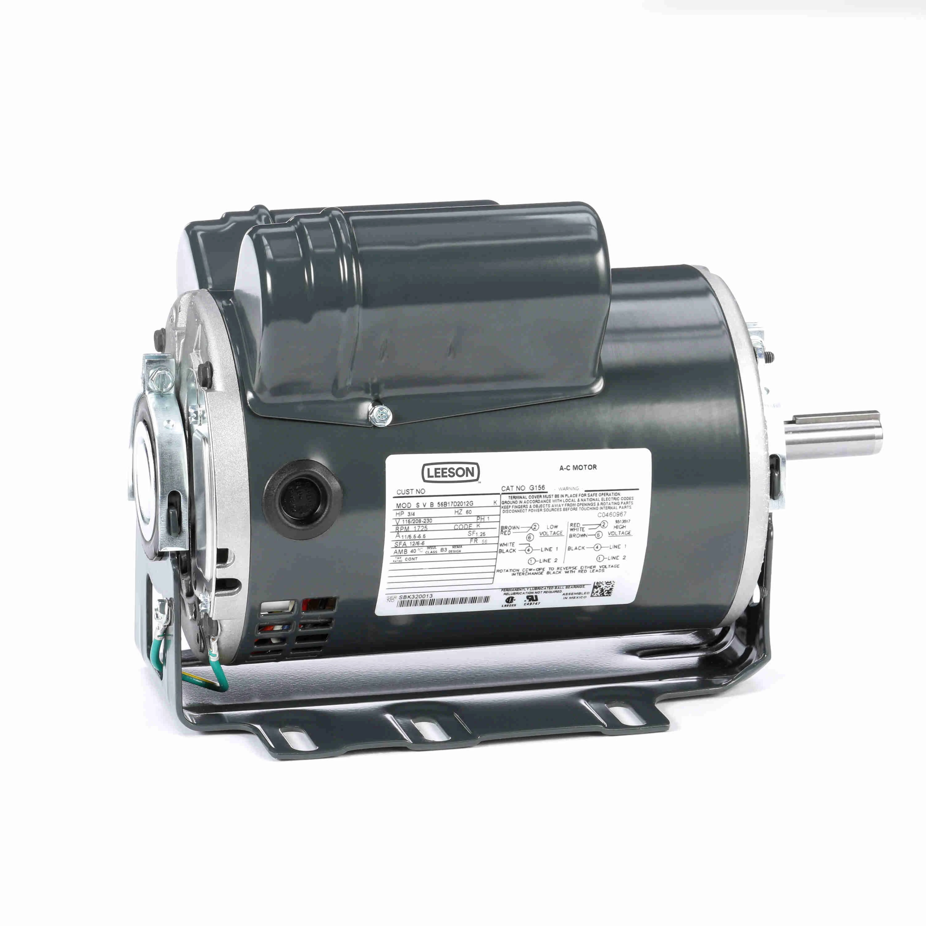 LEESON 056B17D2012 56B17D2012G / G156 Electric Motor, 3/4 RPM, 1800 Frame, 115/208-230 Hz