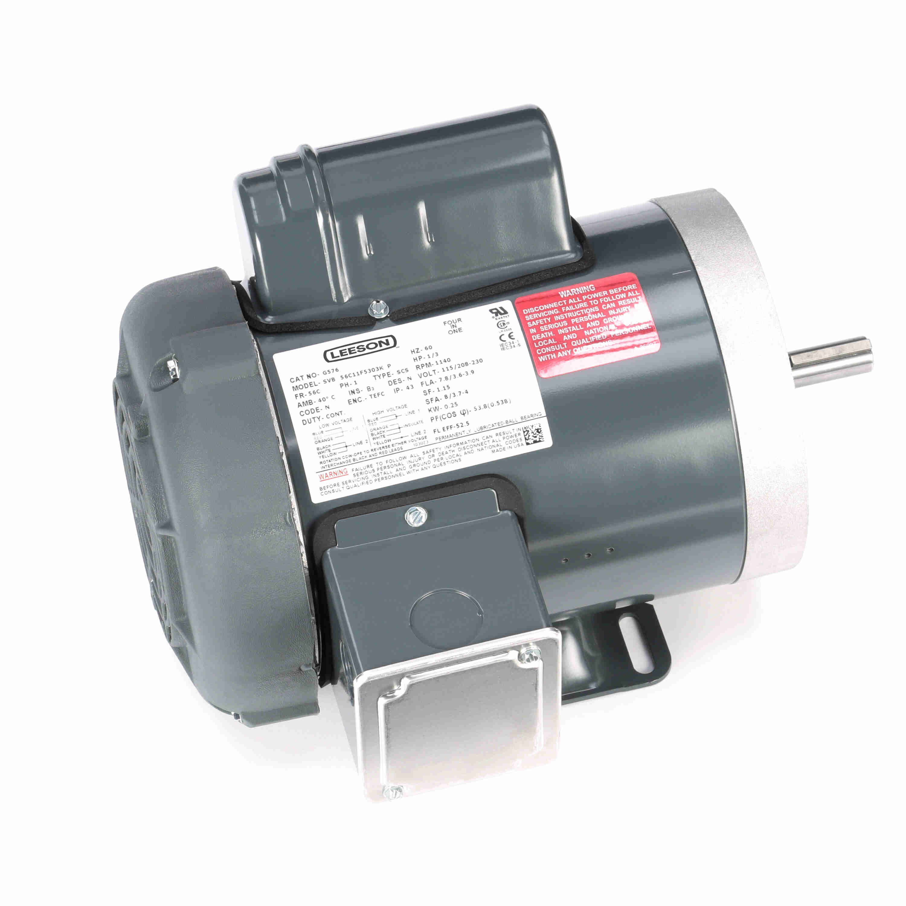 LEESON 056C11F5303 56C11F5303K / G576 General Purpose Motor, 0.33 HP, 1 Phase, 60 Hz, 115/208-230V, 1200 RPM