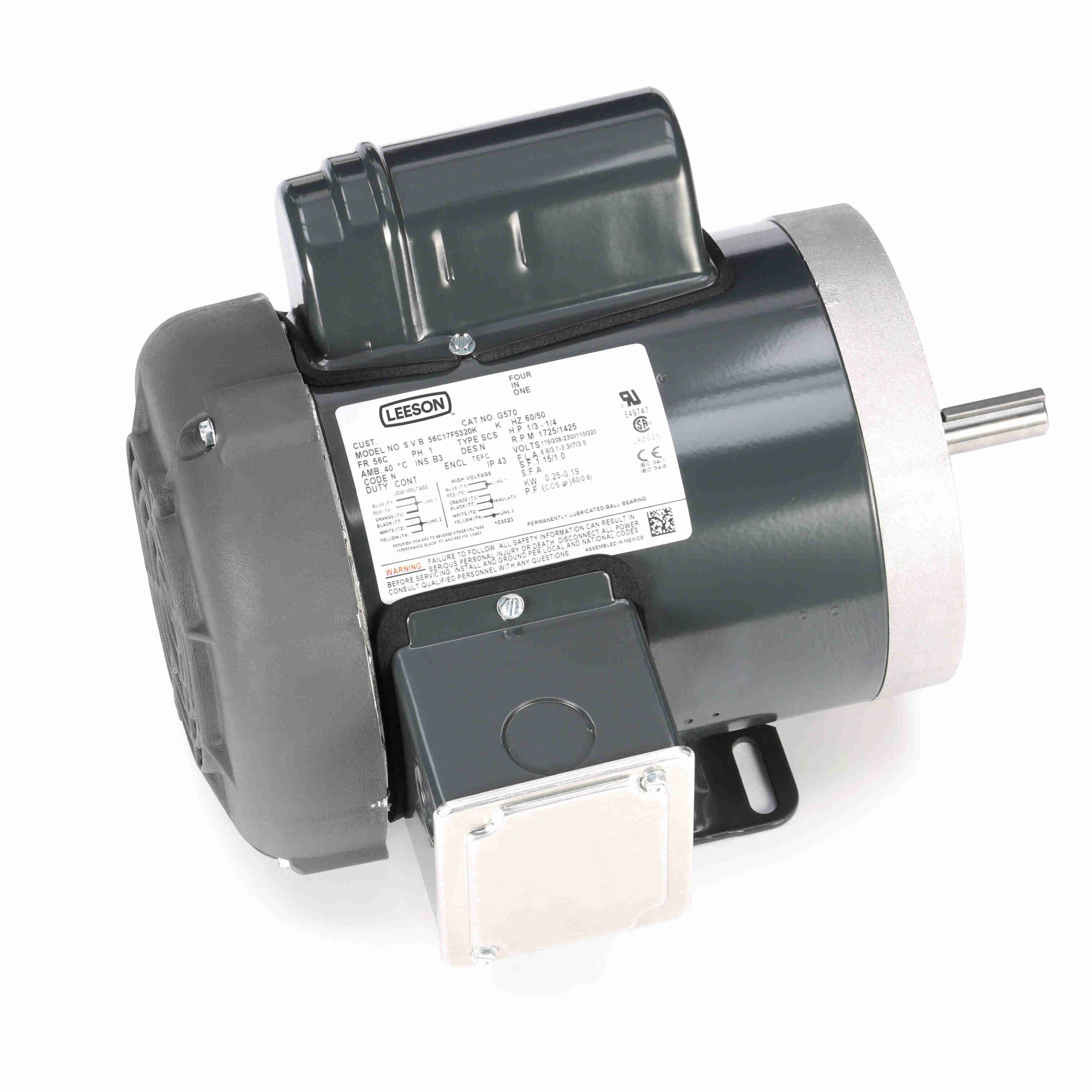 LEESON 056C17F5320 56C17F5320K / G570 General Purpose Motor, 0.33/0.25 HP, 1 Phase, 60/50 Hz, 115/208-230 and 110/220V, 1800 RPM