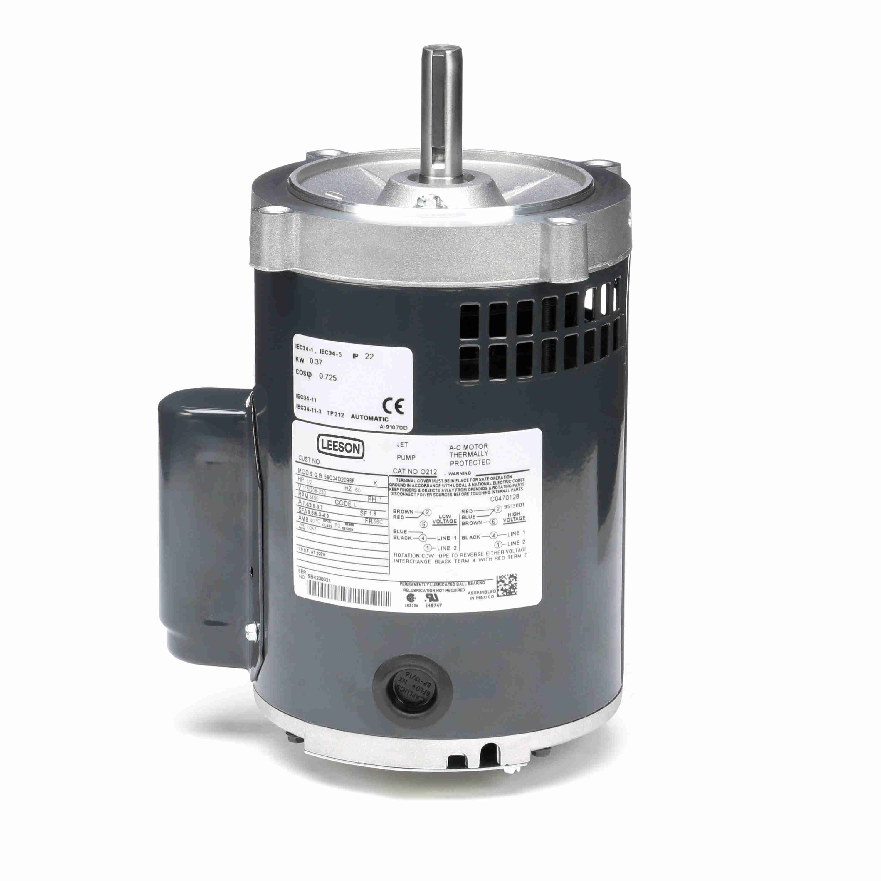 LEESON 056C34D2098 56C34D2098F / O212 Fan and Blower Motor, 0.50 HP, 1 Phase, 60 Hz, 115/208-230V, 3600 RPM