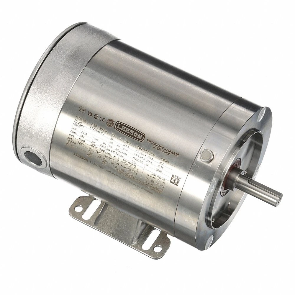 LEESON 117266.00 CZ6T17VK46A Washdown Motor, Three-Phase, 1/2 HP, 1725 RPM, 230/460V AC, 56C Frame Size