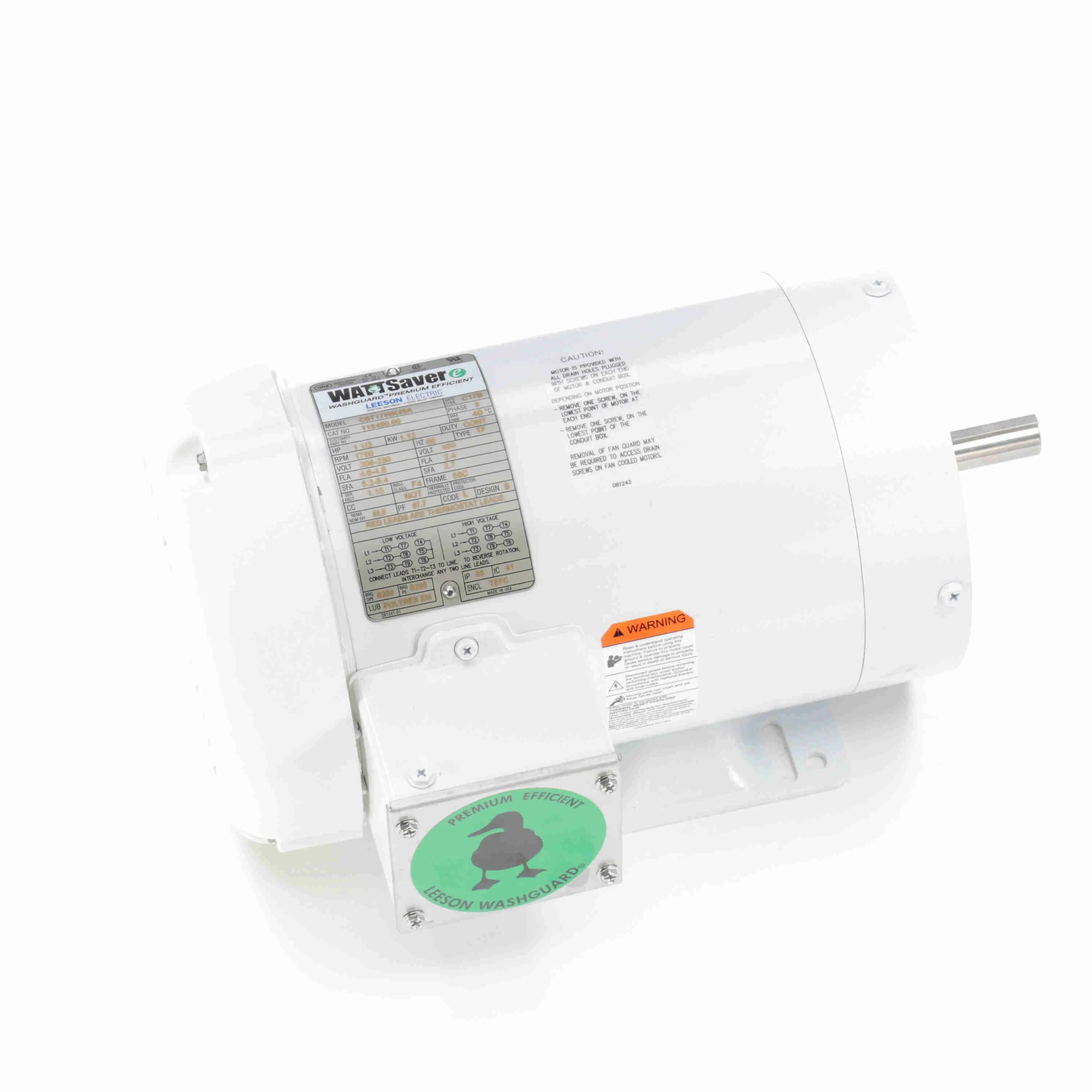 LEESON 119480.00 C6T17WK45A General Purpose Motor, 1.50 HP, 3 Phase, 60 Hz, 230/460V, 1800 RPM