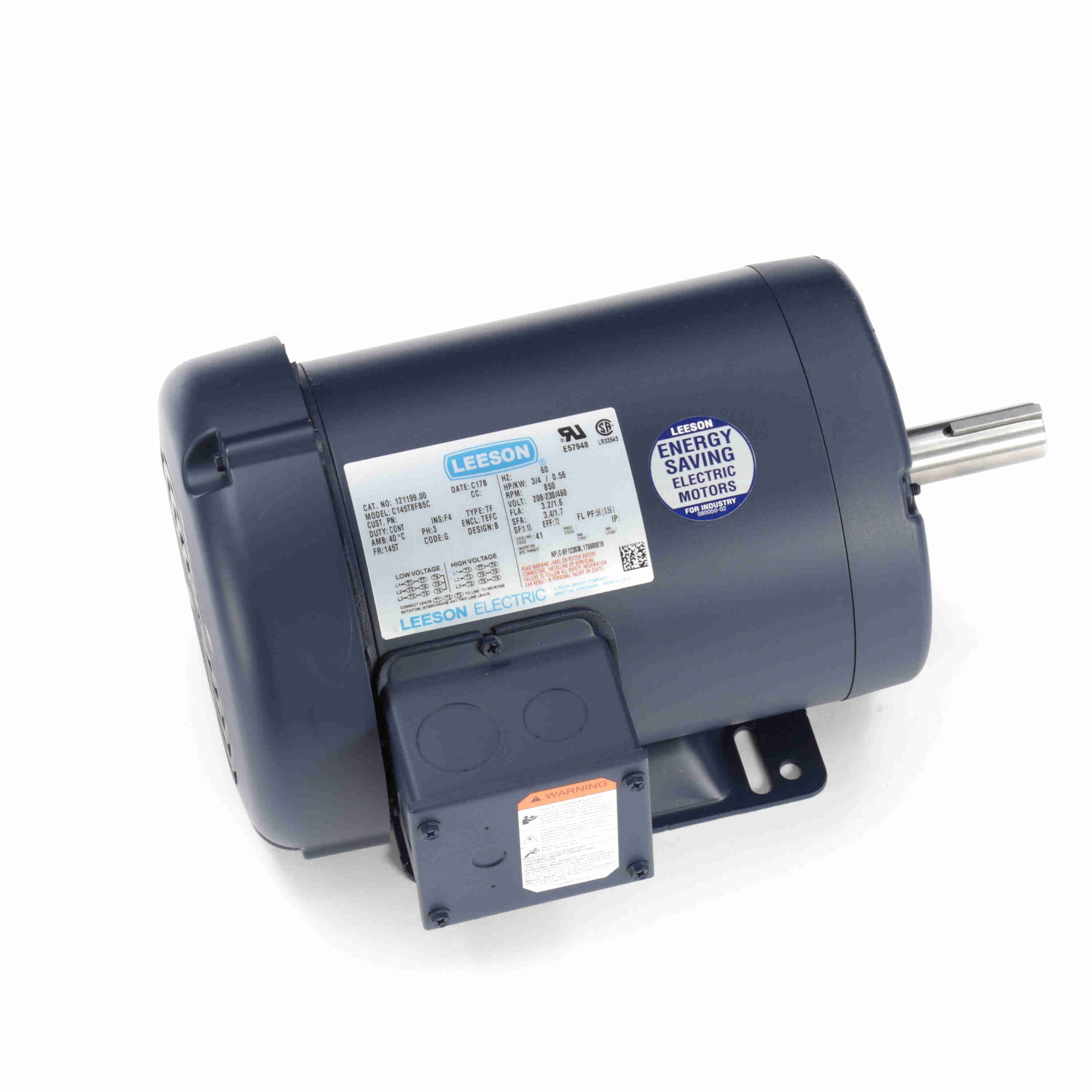 LEESON 121199.00 C145T8FB5C General Purpose Motor, 0.75 HP, 3 Phase, 60 Hz, 230/460V, 900 RPM