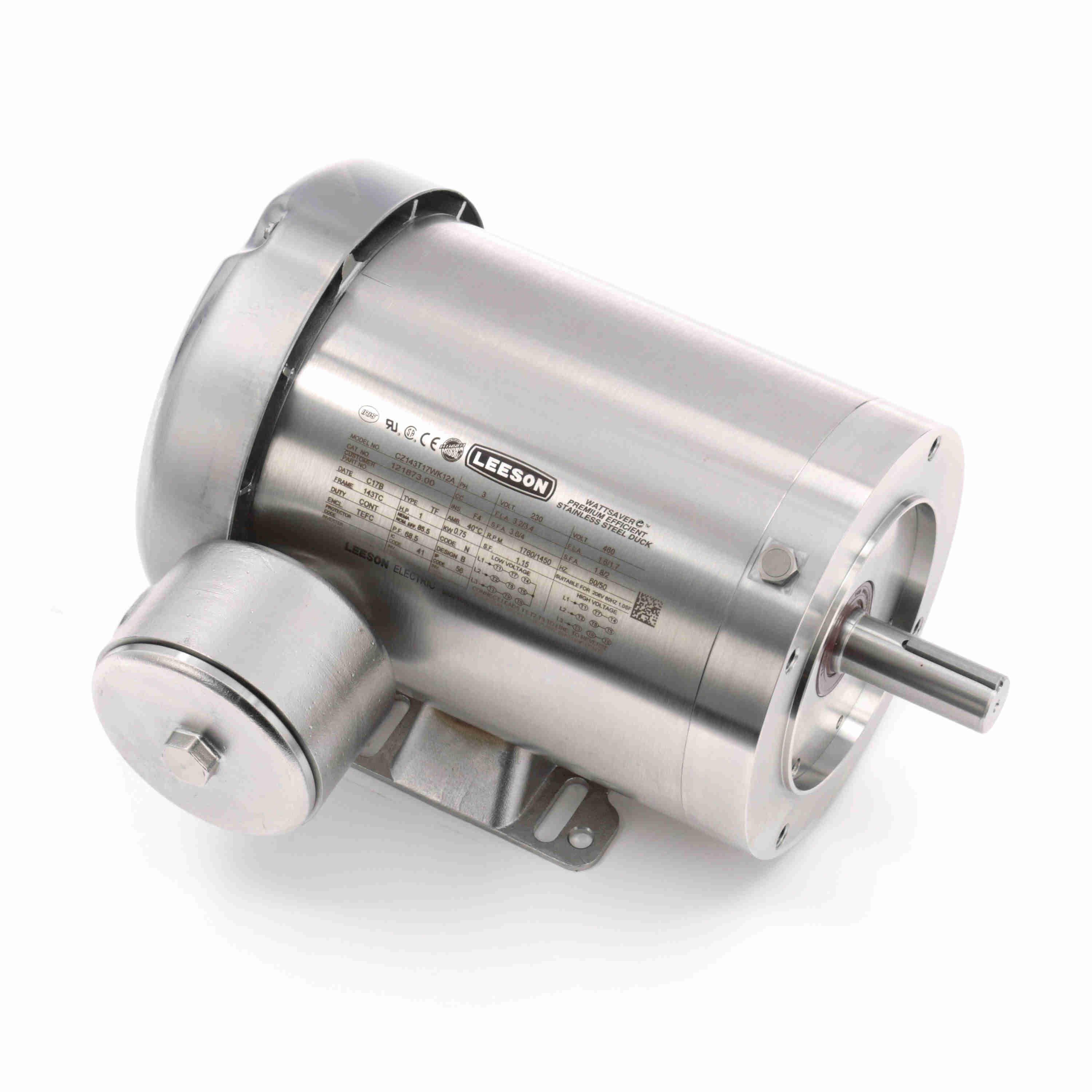 LEESON 121873.00 CZ143T17WK12A General Purpose Motor, 1 HP, 3 Phase, 60/50 Hz, 230/460 and 208-230/460V, 1800 RPM