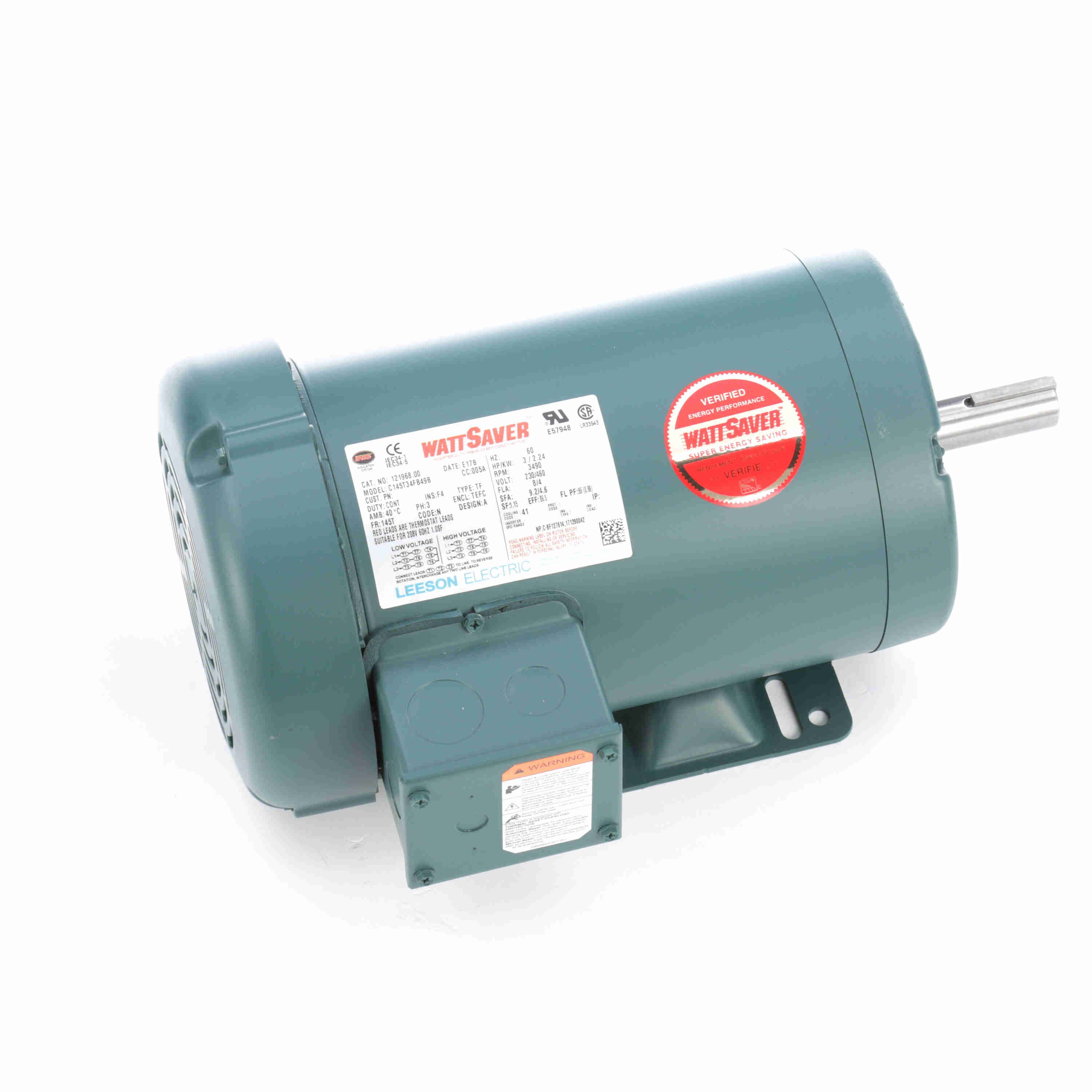 LEESON 121968.00 C145T34FB49B General Purpose Motor, 3 HP, 3 Phase, 60 Hz, 230/460V, 3600 RPM