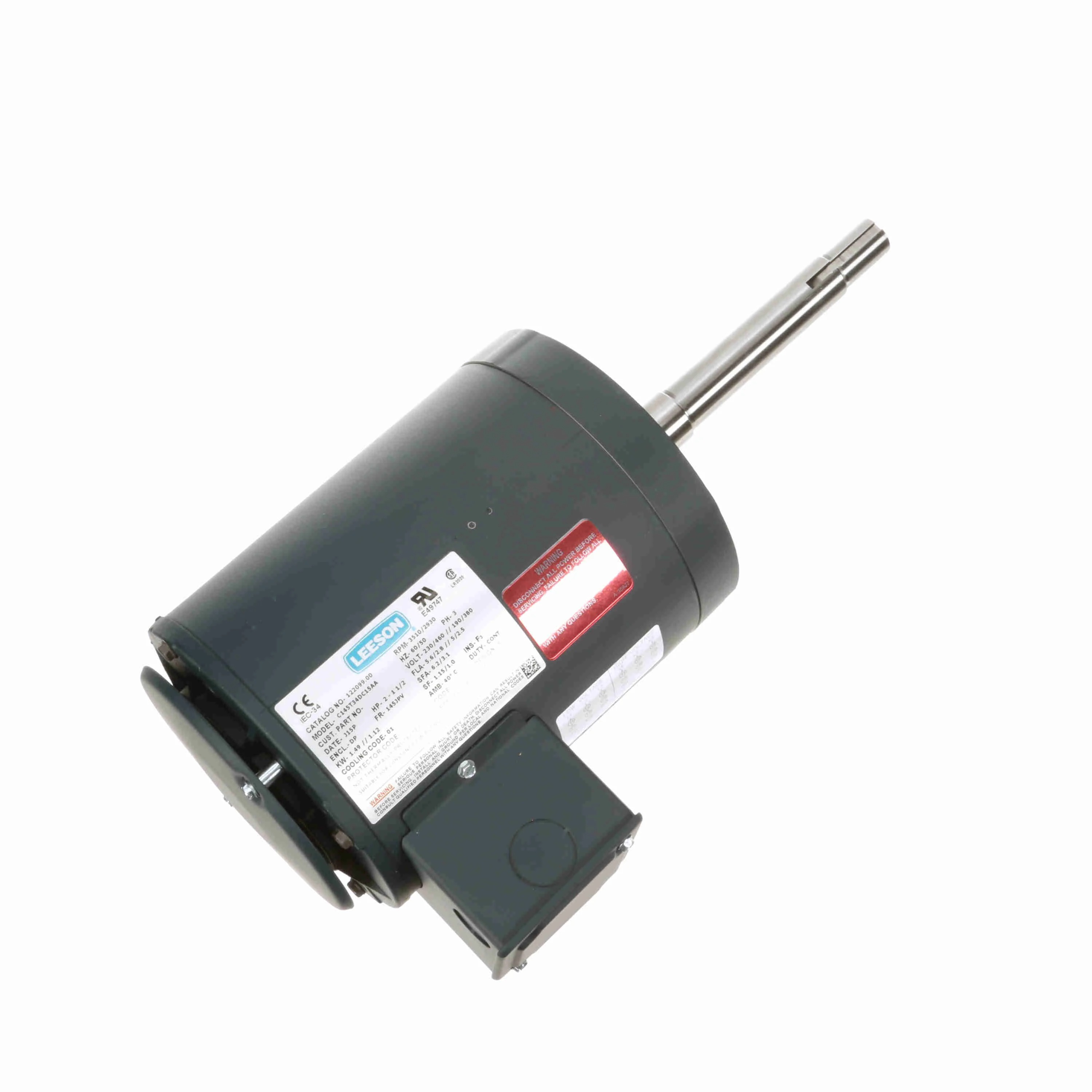 LEESON 122099.00 C145T34DC15AA Close Coupled Pump Motor, 2/1.50 HP, 3 Phase, 60/50 Hz, 230/460 and 190/380V, 3600 RPM