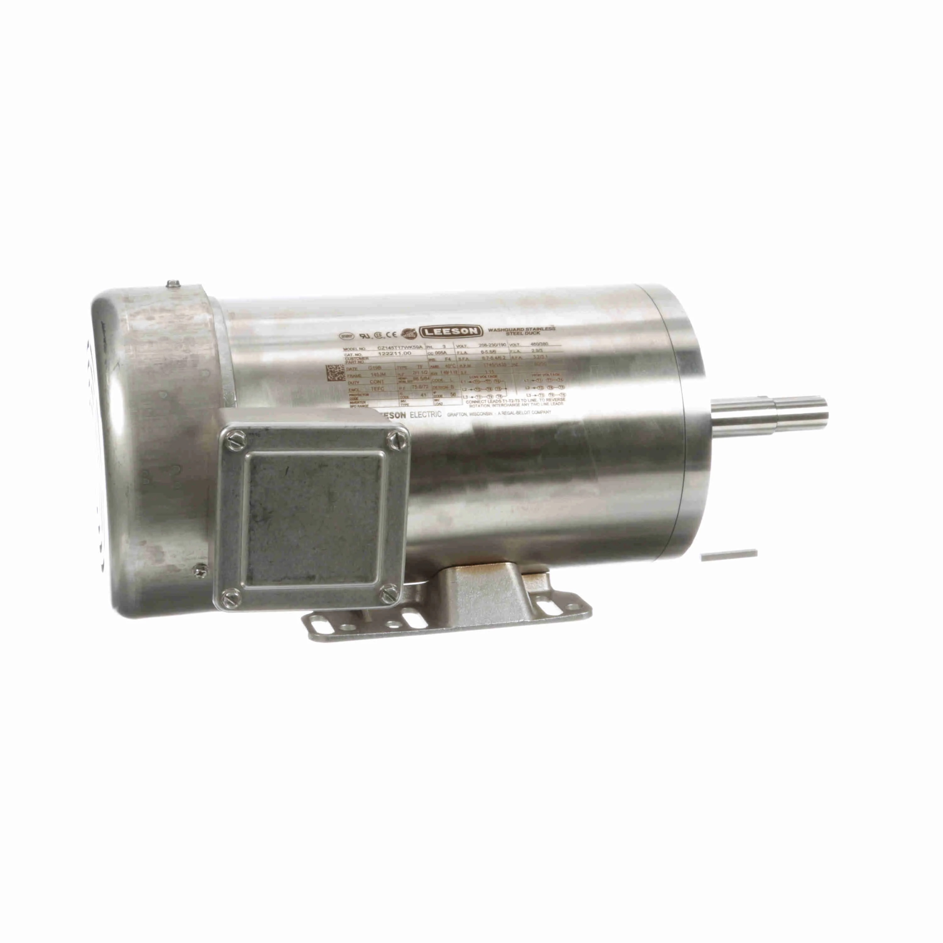 LEESON 122211.00 CZ145T17WK59A Washdown Pump Motor, 2/1.50 HP, 3 Phase, 60/50 Hz, 230/460 and 190/380V, 1800 and 1500 RPM