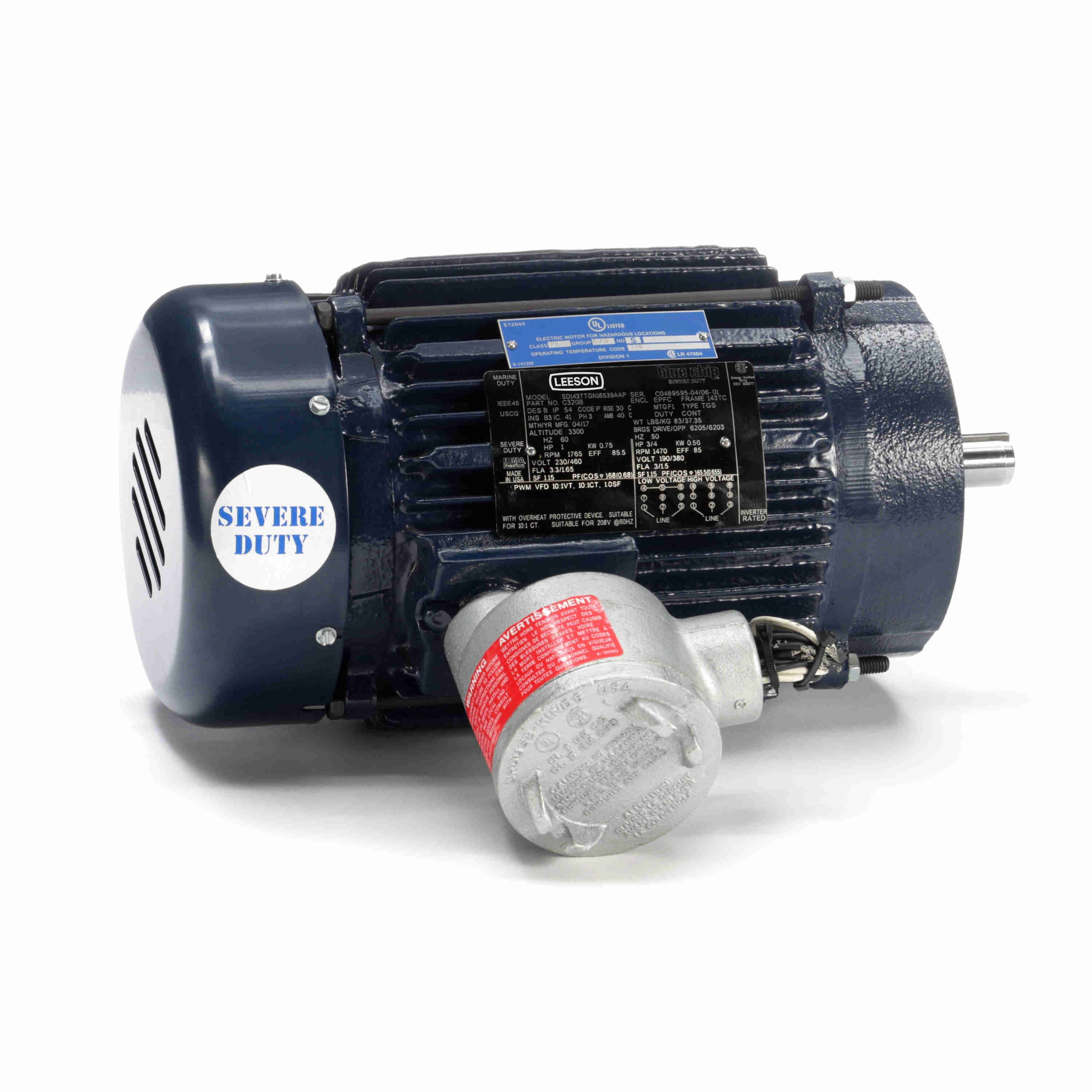 LEESON 143TTGN16539 143TTGN16539AA / C320B Explosion Proof Motor, 1/0.75 HP, 3 Phase, 60/50 Hz, 230/460 and 190/380 V, 1800 RPM