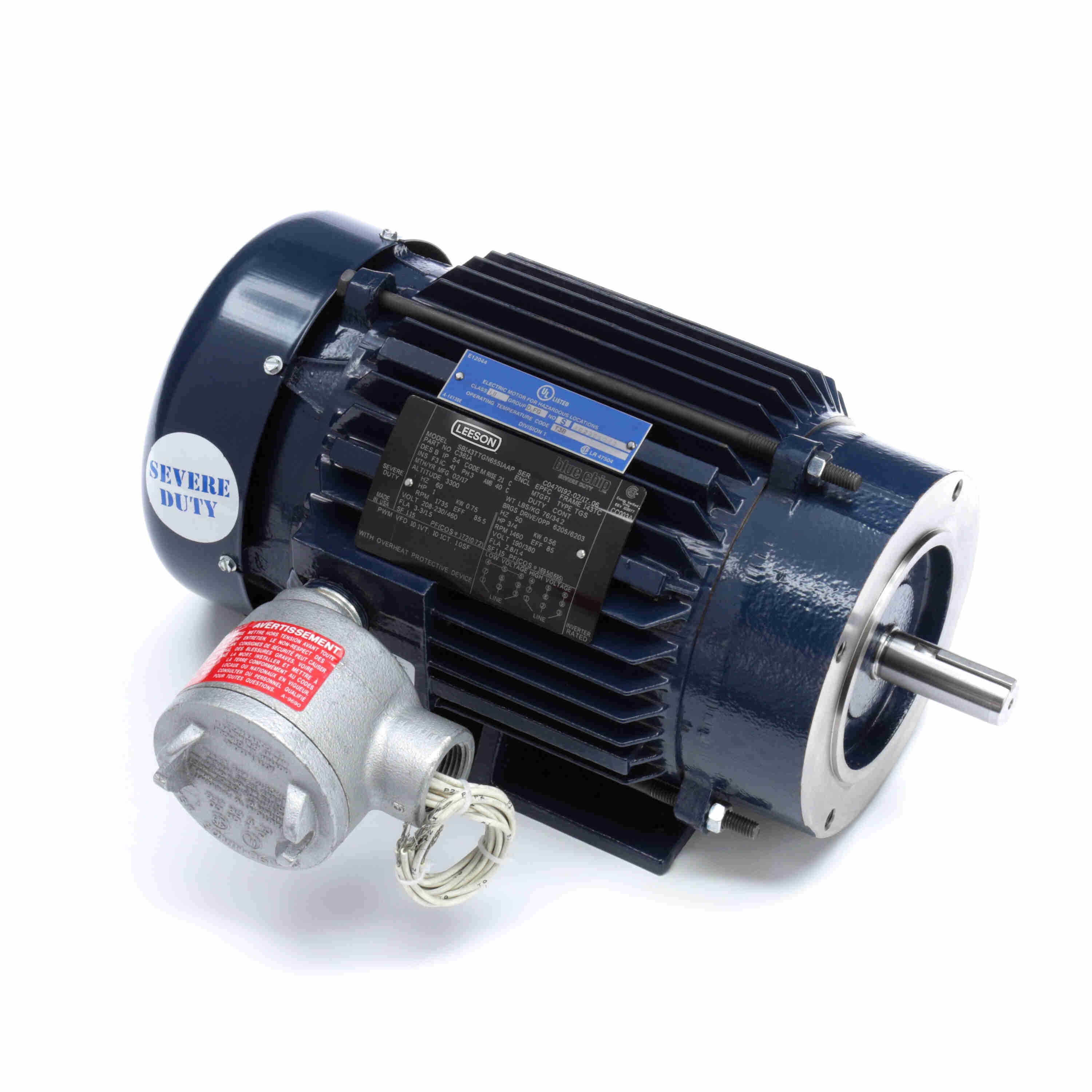 LEESON 143TTGN6551 143TTGN6551AA / C361A Explosion Proof Motor, 1/0.75 HP, 3 Phase, 60/50 Hz, 230/460 and 190/380 V, 1800 RPM