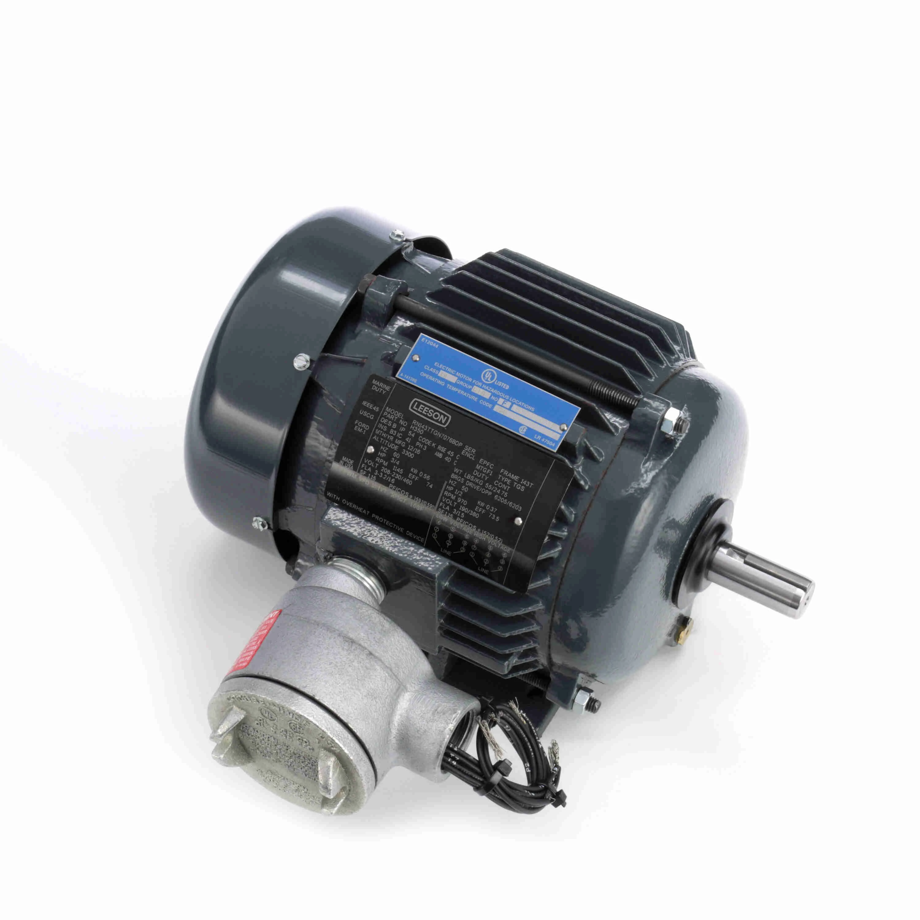 LEESON 143TTGN7076 143TTGN7076BD / H350 Explosion Proof Motor, 0.75/0.50 HP, 3 Phase, 60/50 Hz, 1200/1000 RPM, 143T Frame