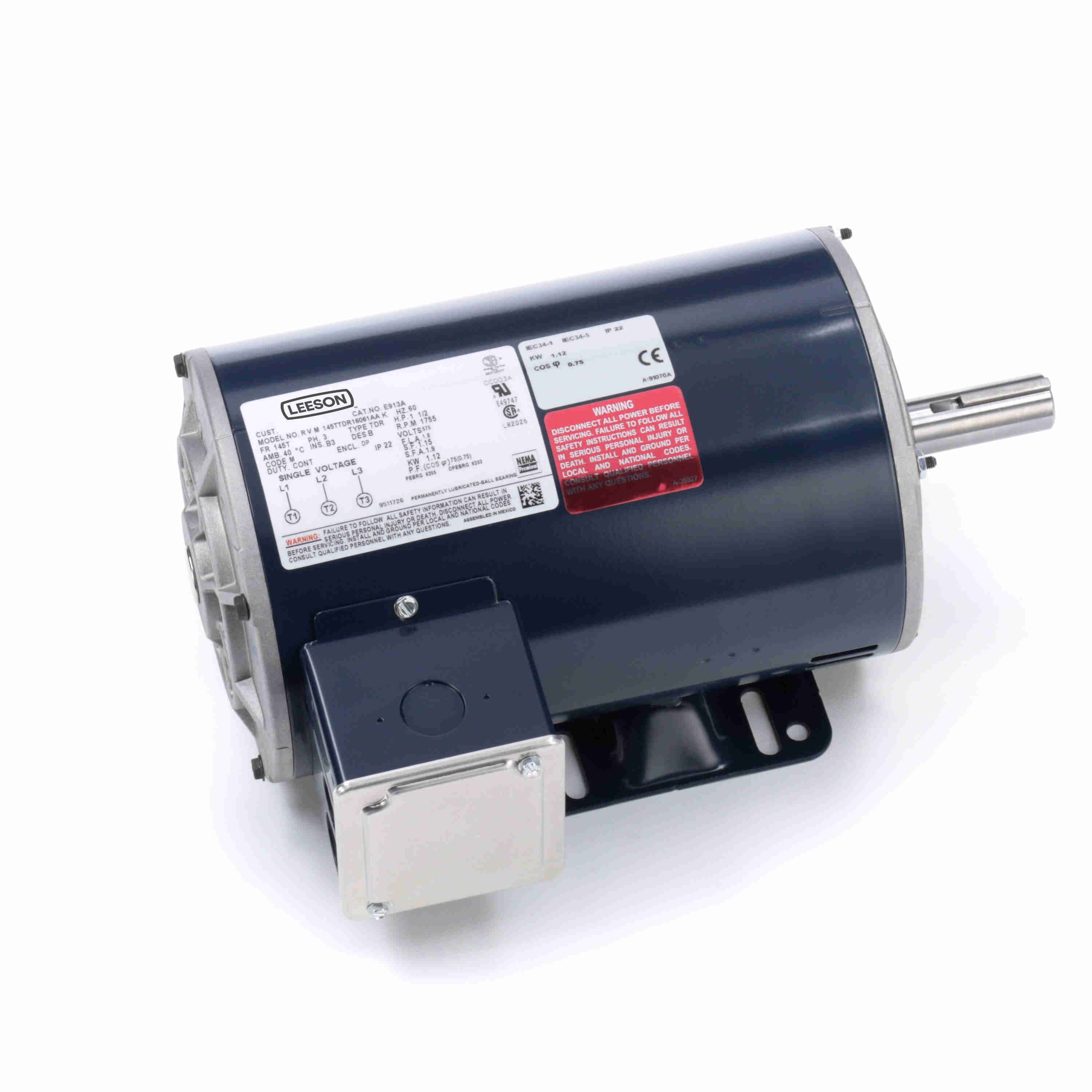 LEESON 145TTDR16061 145TTDR16061AA / E913A General Purpose General Purpose Motor, 1.50 HP, 3 Phase, 60 Hz, 575V, 1800 RPM