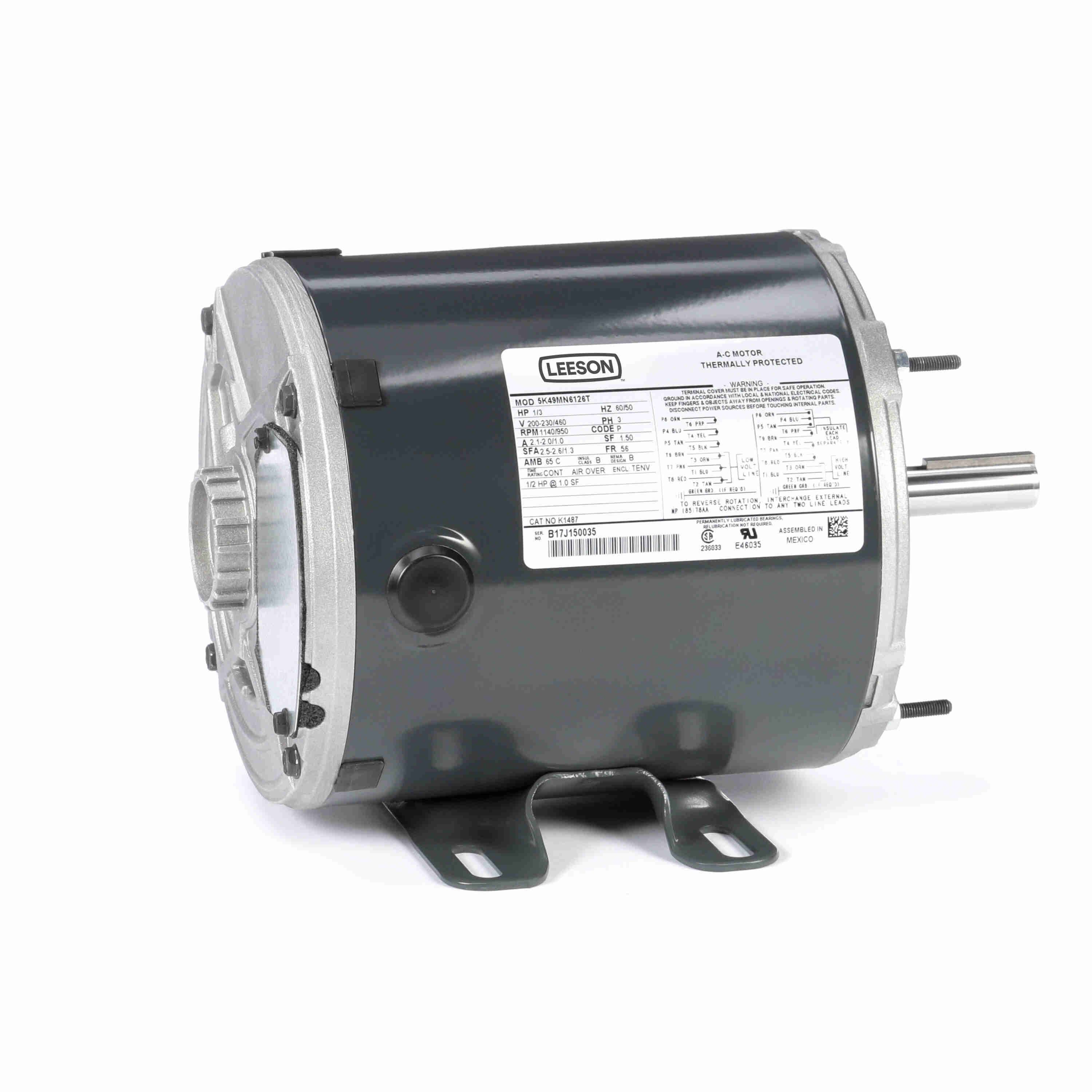 LEESON 5K49MN6126T K1487 Fan and Blower Motor, 0.33 HP, 3 Phase, 60 Hz, 200-230/460V, 1200 RPM