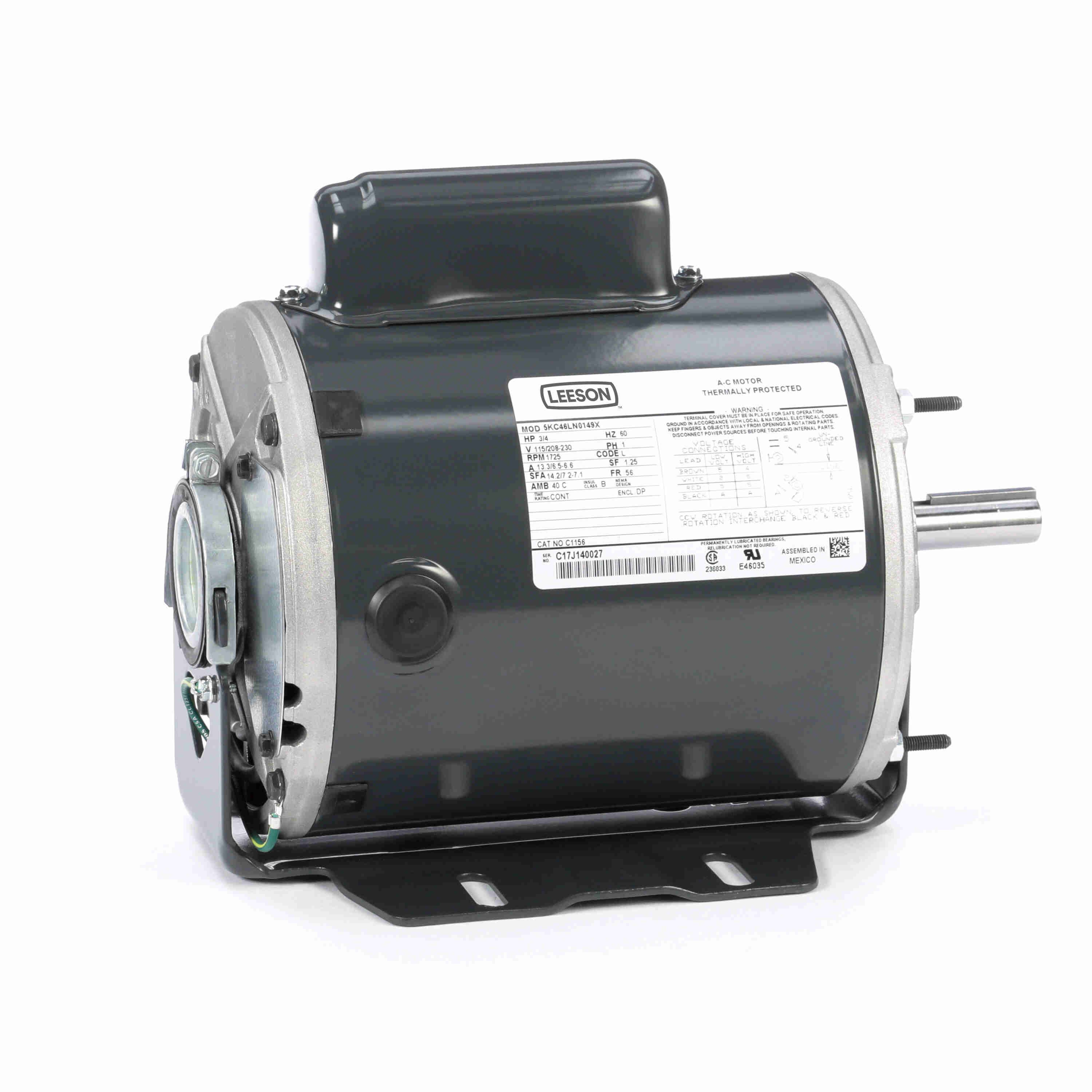 LEESON 5KC46LN0149X C1156 General Purpose Motor, 0.75 HP, 1 Phase, 60 Hz, 115/208-230V, 1800 RPM