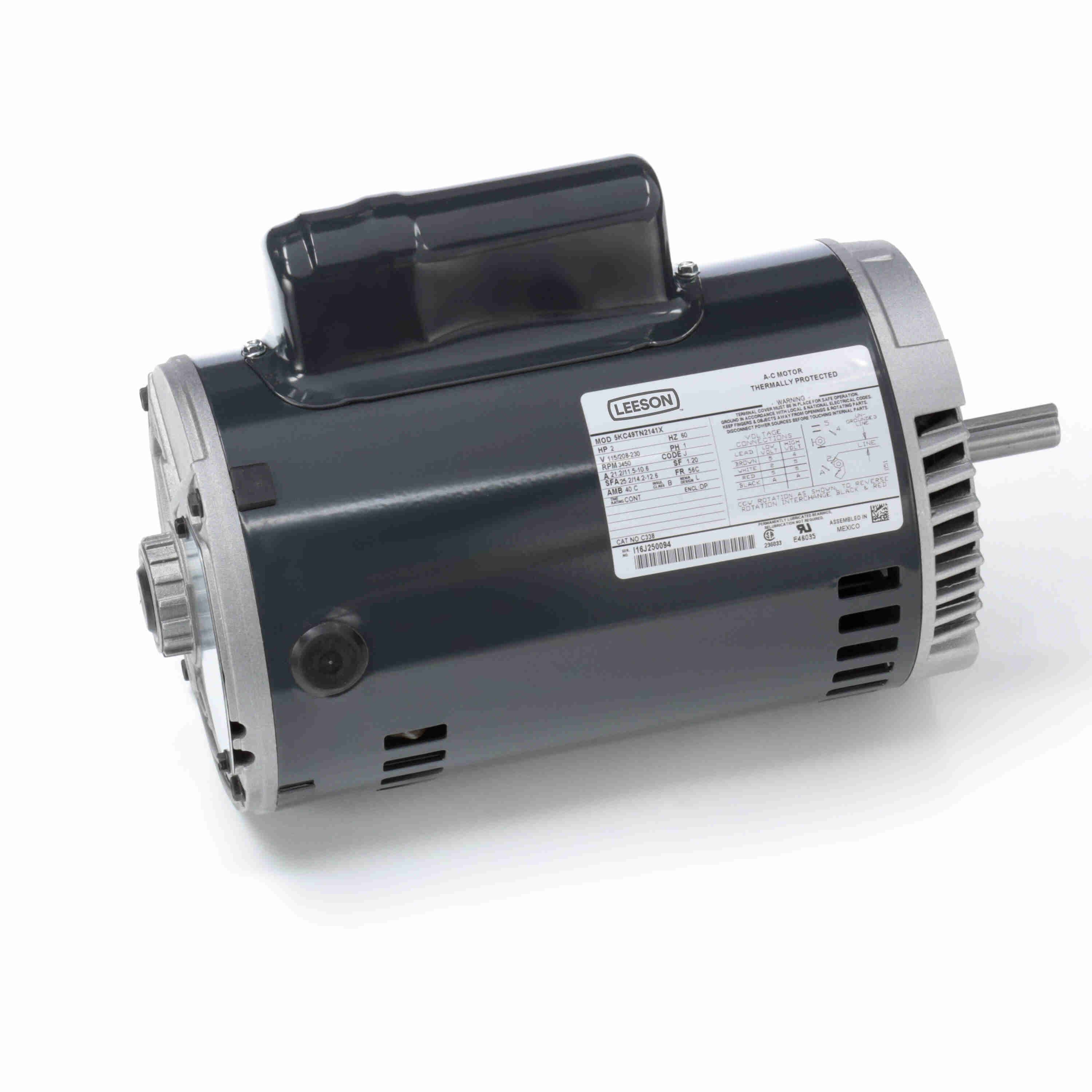 LEESON 5KC49TN2141X C338 General Purpose Pump Motor, 2 HP, 1 Phase, 60 Hz, 115/208-230V, 3600 RPM