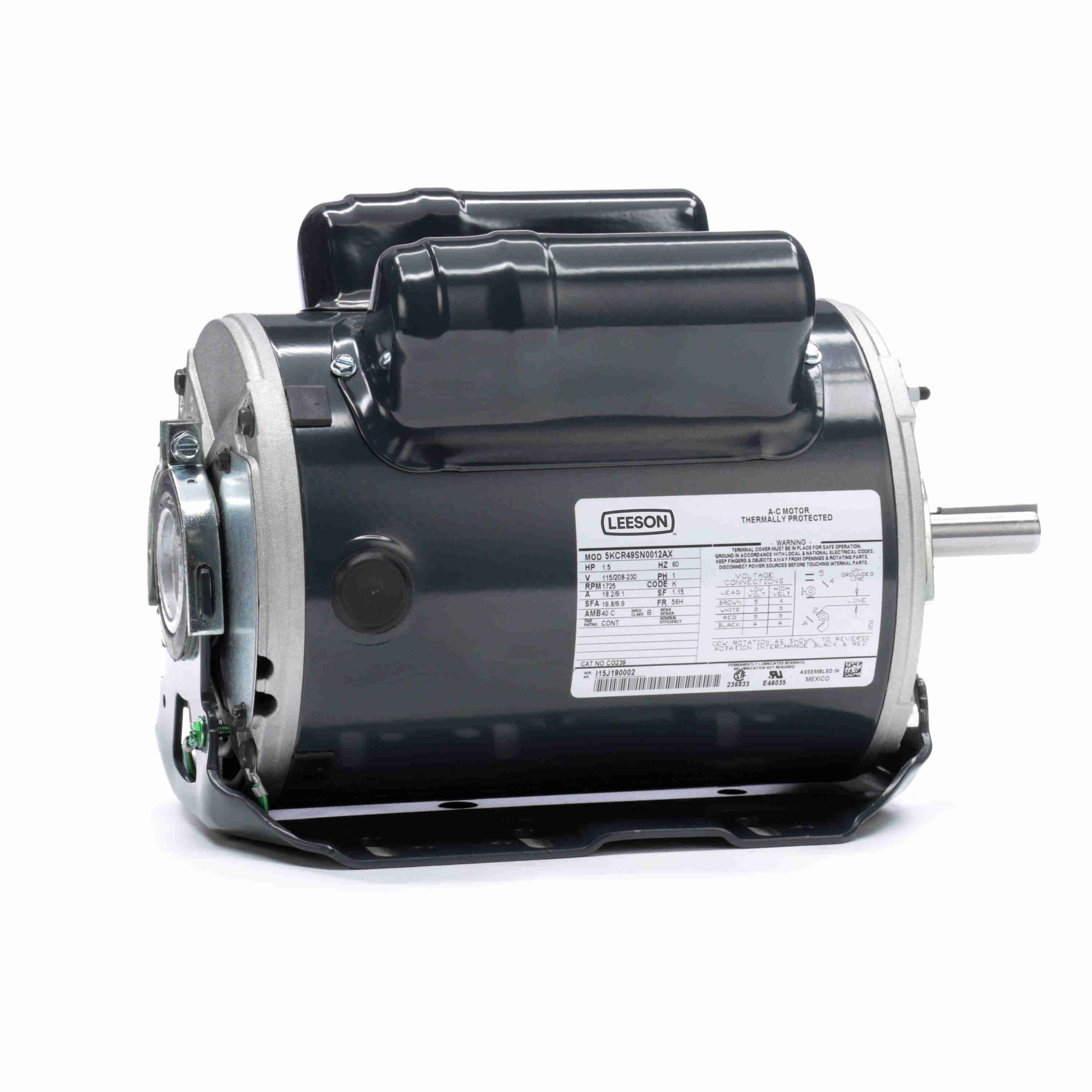 LEESON 5KCR49SN0012X 5KCR49SN0012AX / CG239 General Purpose Motor, 1.50 HP, 1 Phase, 60 Hz, 115/208-230V, 1800 RPM