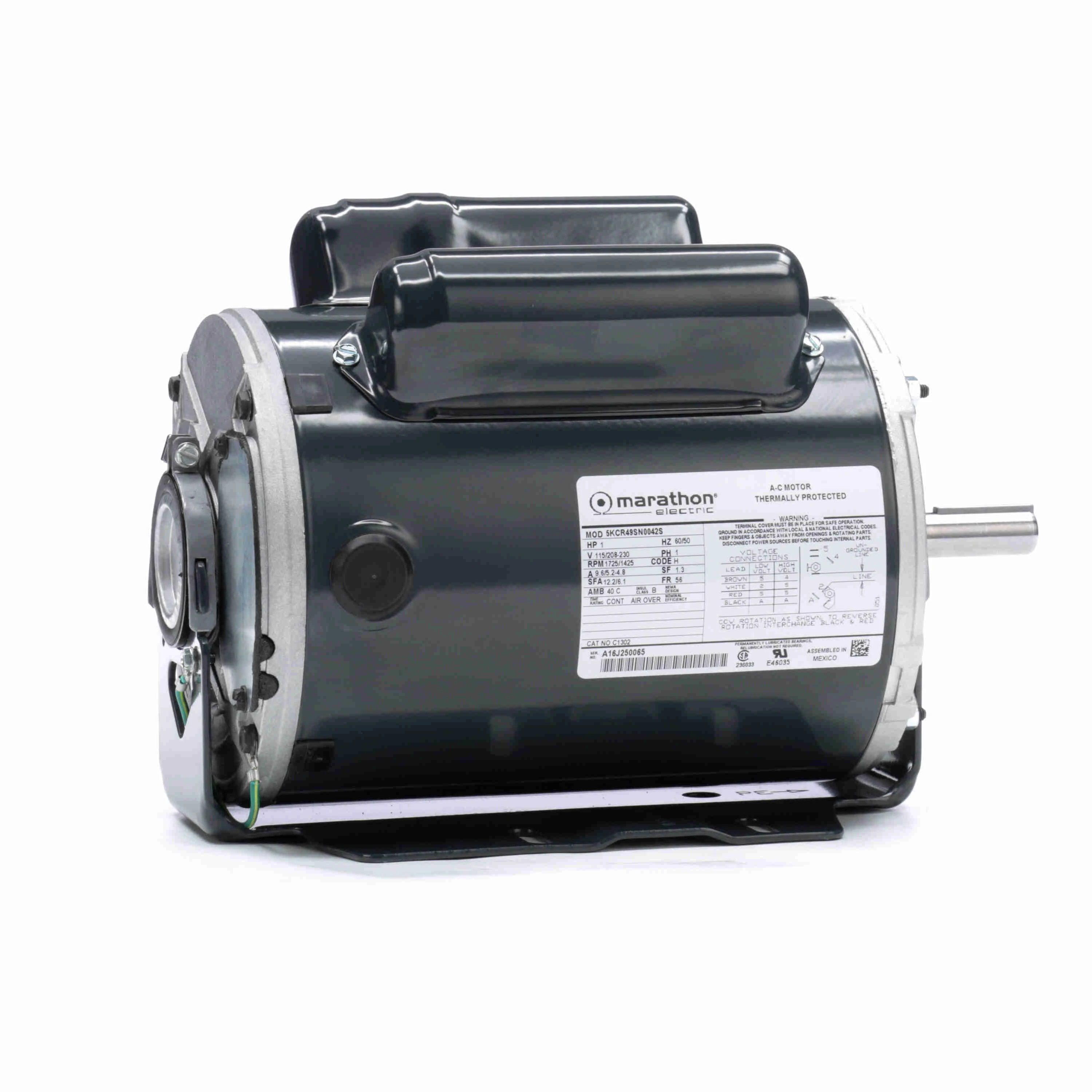 5KCR49SN0493S | 115/208-230V AC | 1 hp | 1701-1800 RPM | 1725 RPM | Capacitor Start/Run | 56 | Automatic | 1.3 | €543.50 | |