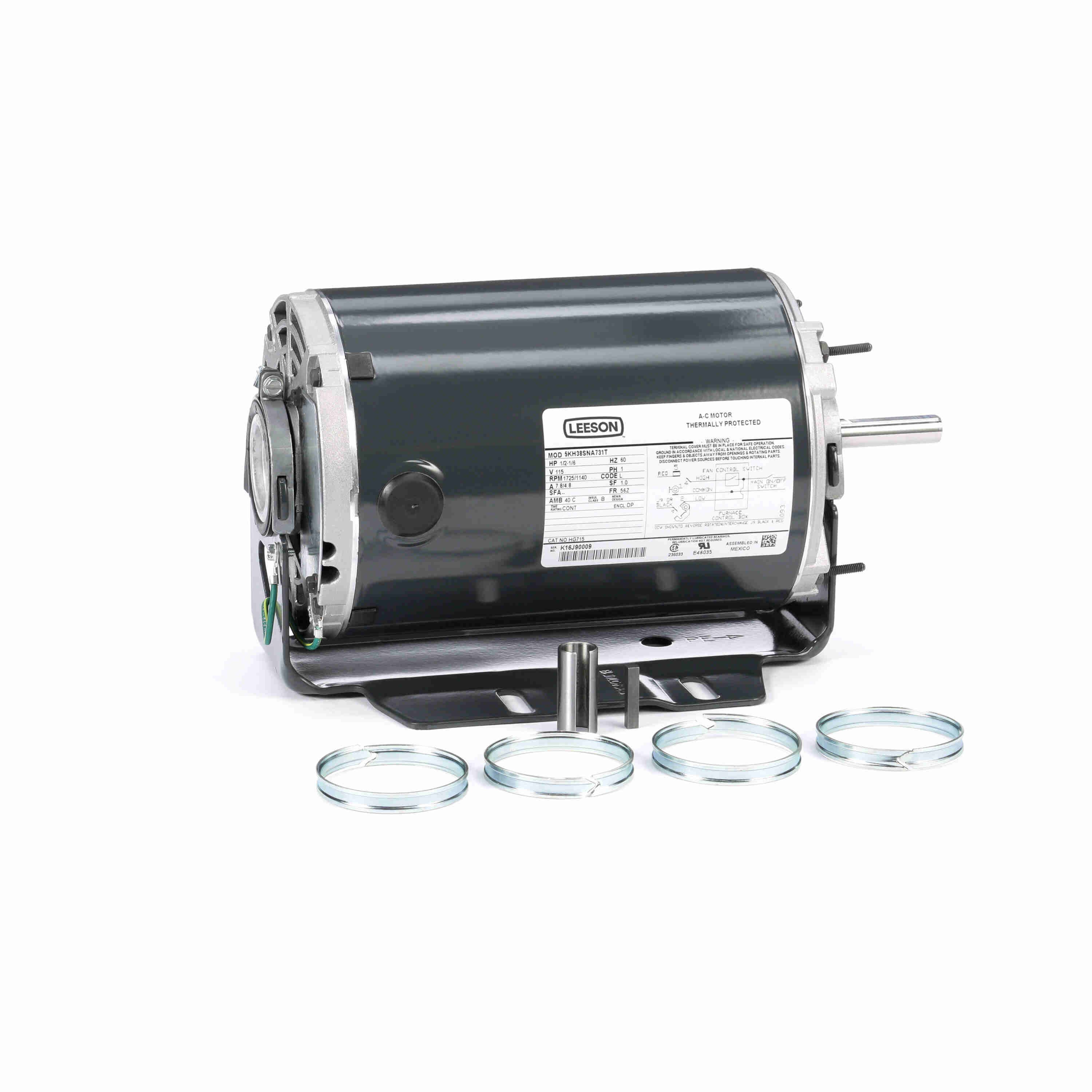 LEESON 5KH38SNA731T HG715 Fan and Blower Motor, .5,.17 HP, 1 Phase, 60 Hz, 115V, 1800 RPM