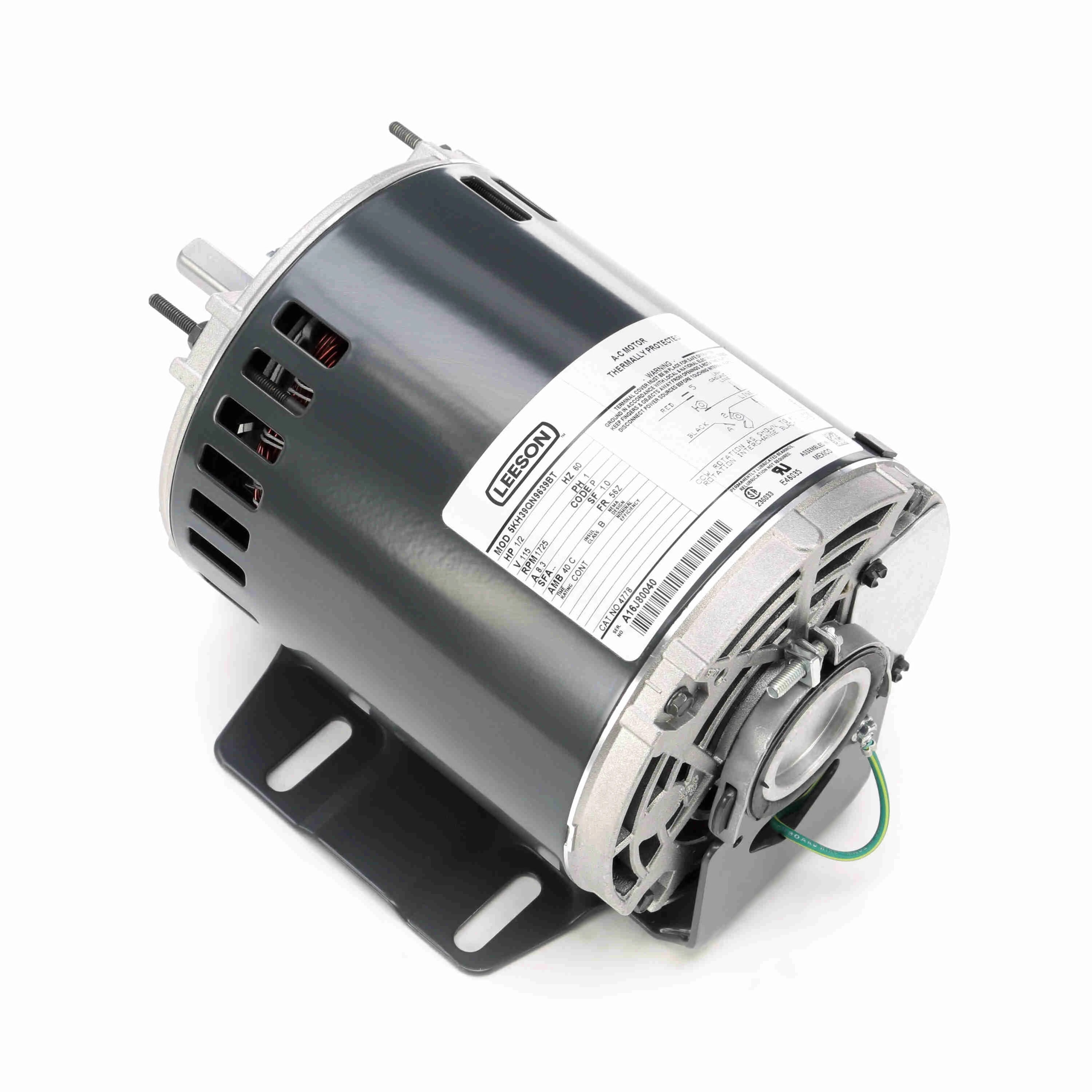LEESON 5KH39QN9639T 5KH39QN9639BT / 4778 General Purpose Motor, 0.50 HP, 1 Phase, 60 Hz, 115 V, 1800 RPM, 56Z Frame