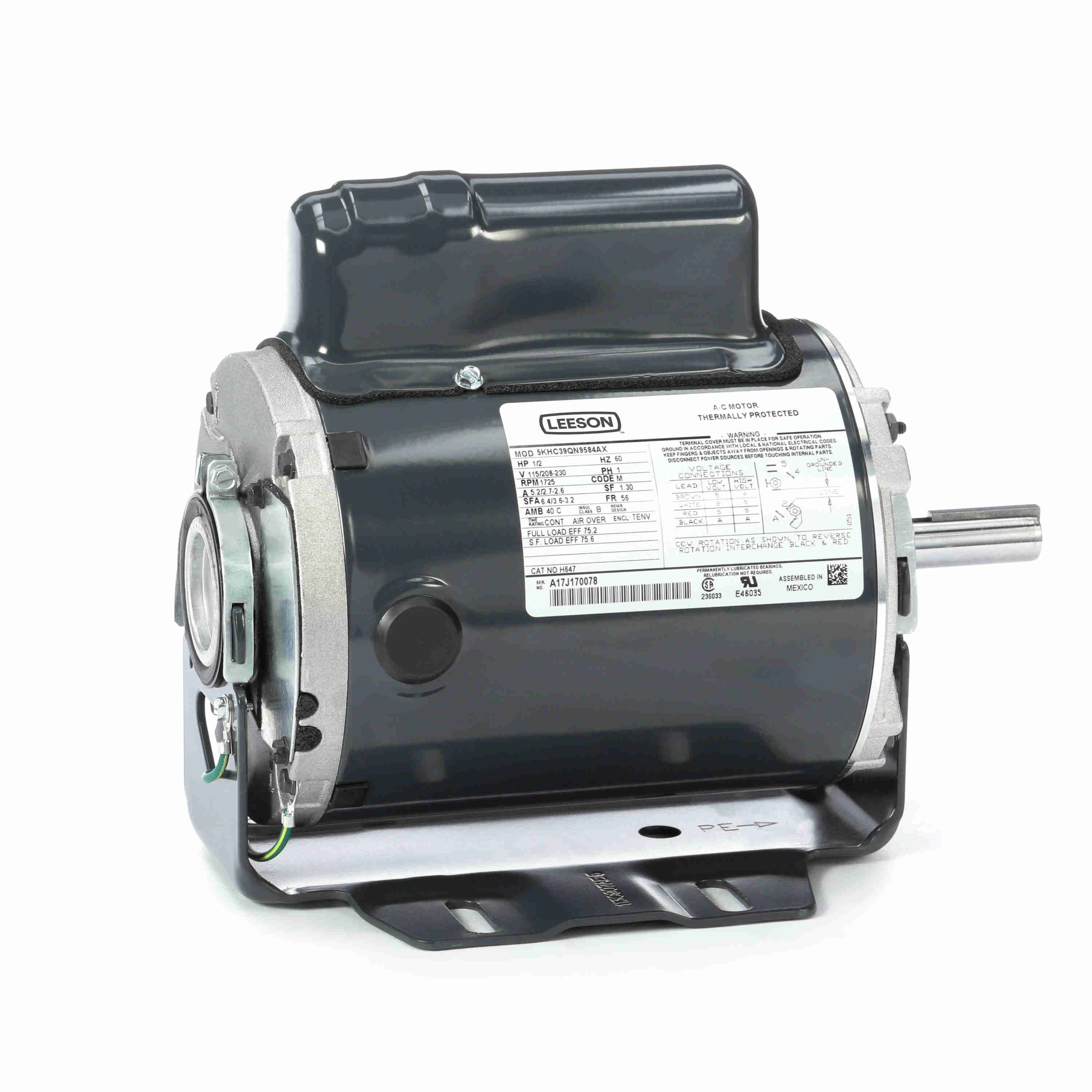 LEESON 5KHC39QN9584X 5KHC39QN9584AX / H647 General Purpose Farm Duty Motor, 0.50 HP, 1 Phase, 60 Hz, 115/208-230V, 1800 RPM