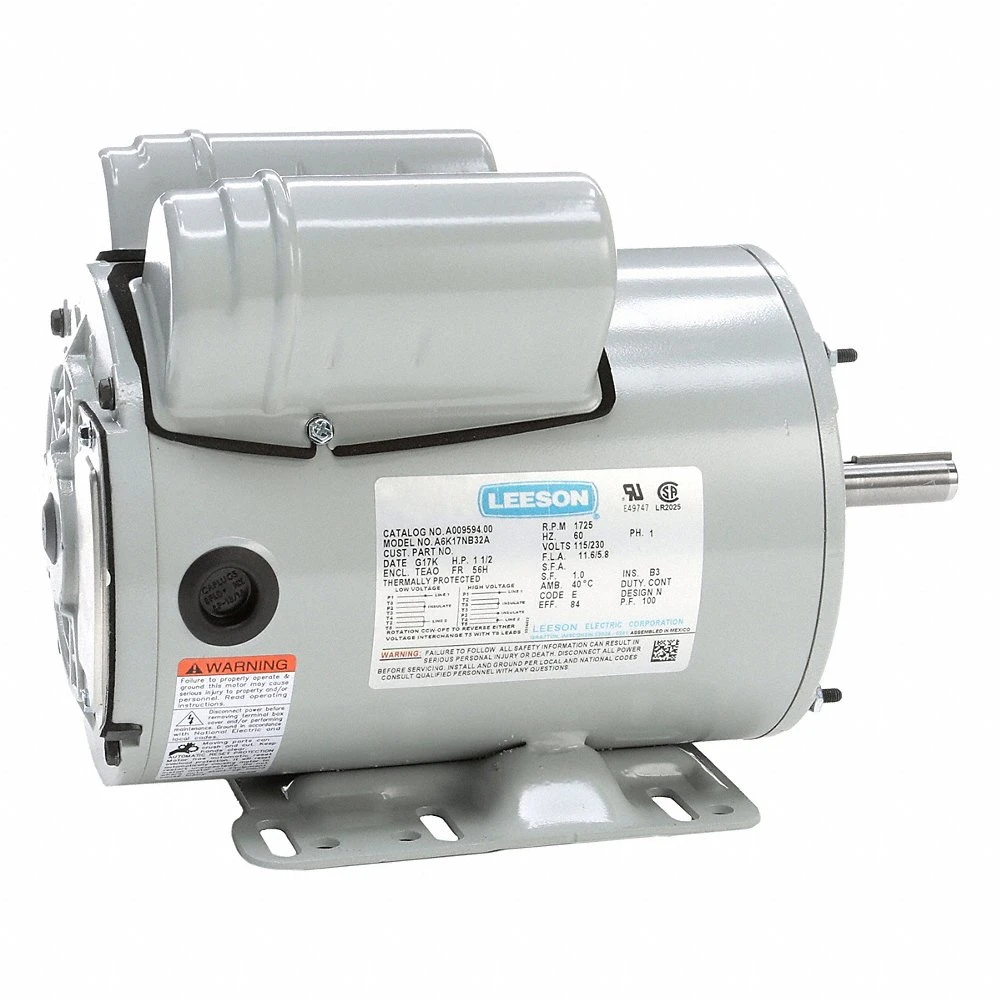 LEESON A009594.00 A6K17NB32A Farm Duty Motor, 1 1/2, 1725 Nameplate RPM, 115/230V AC, 56H, Auto, 1 Motor Service Factor