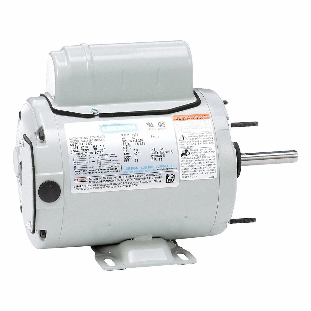 LEESON A099261.00 A4P11NB53A Farm Duty Motor, 1/3, 1,075 Nameplate RPM, 115/230V AC, 48Z, Auto, 1 Motor Service Factor