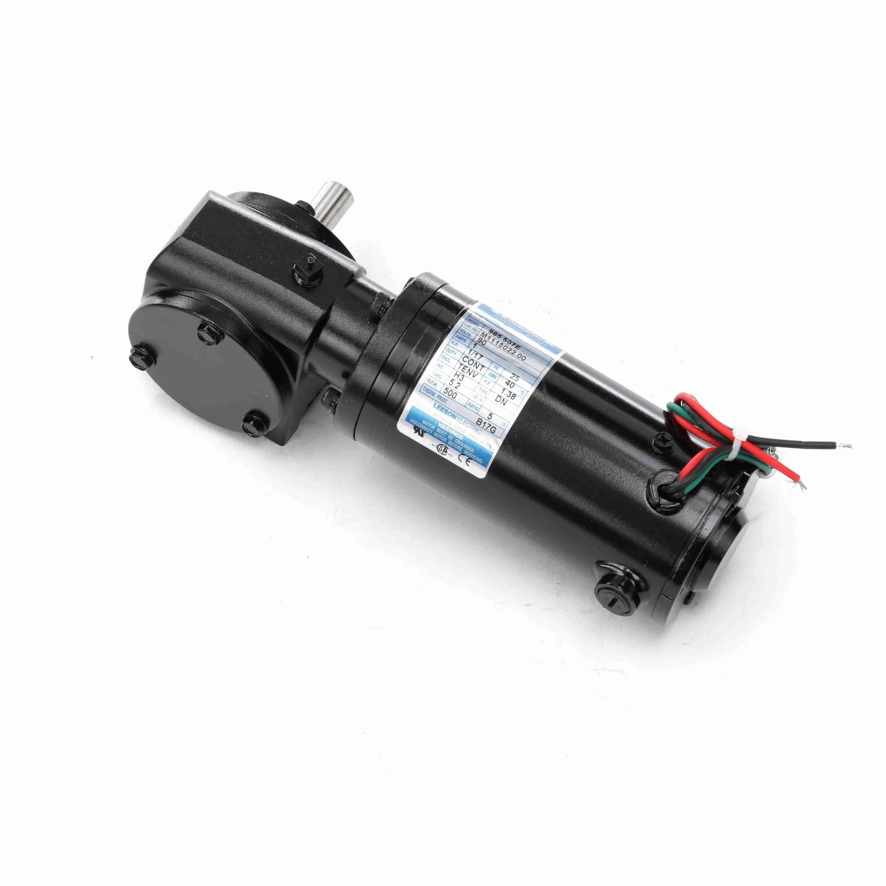 LEESON M1115022.00 985.507E Right Angle Gearmotor, 0.06 HP, 90V, 500 RPM