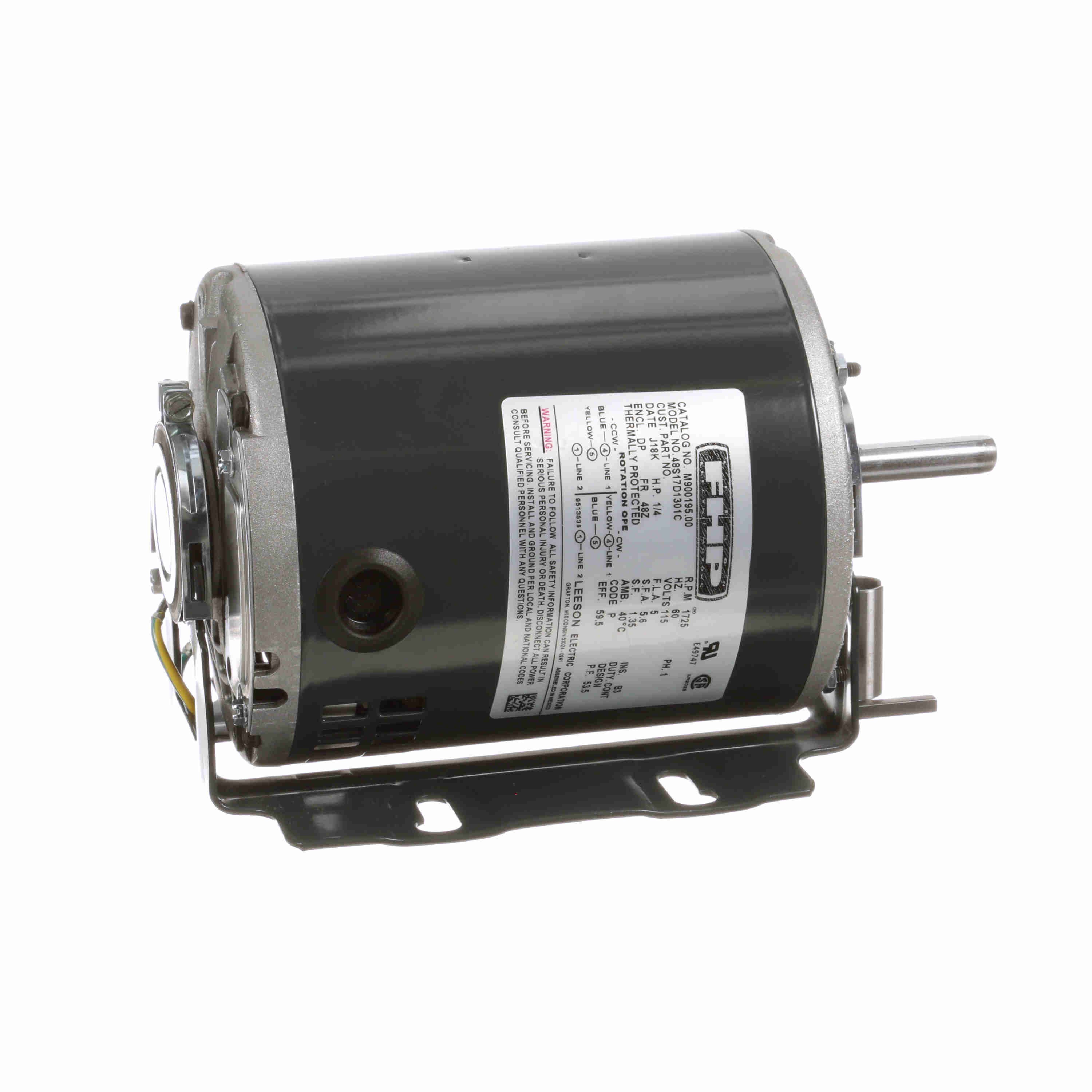 LEESON M900195.00 48S17D1301C Fan and Blower Motor, 0.25 HP, 1 Phase, 60 Hz, 115V, 1800 RPM