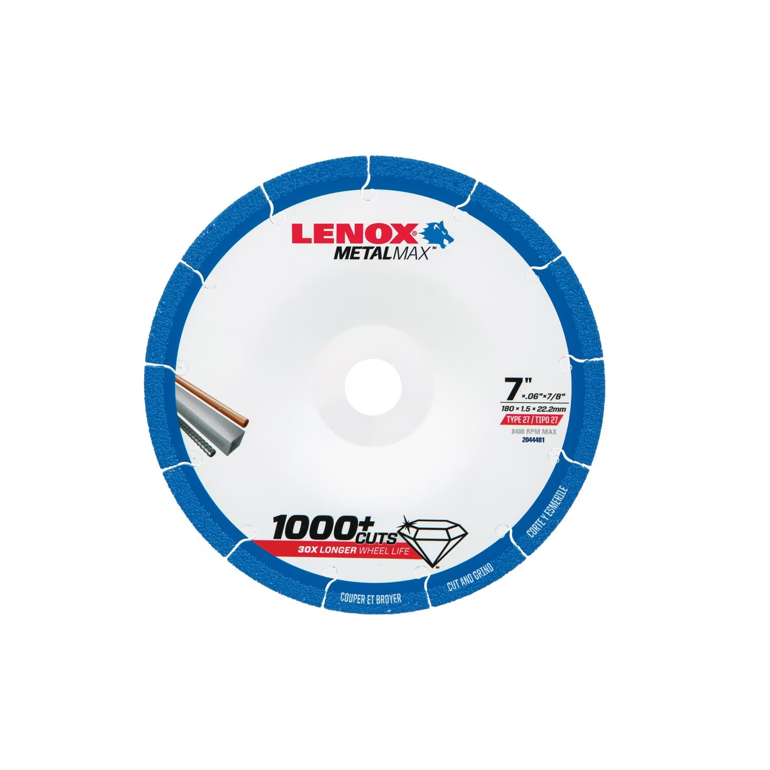 LENOX TOOLS 2044481 Abrasive Cut-Off Wheel, 7 Inch Abrasive Wheel Dia, Diamond, Type 27, 7/8 Inch Size