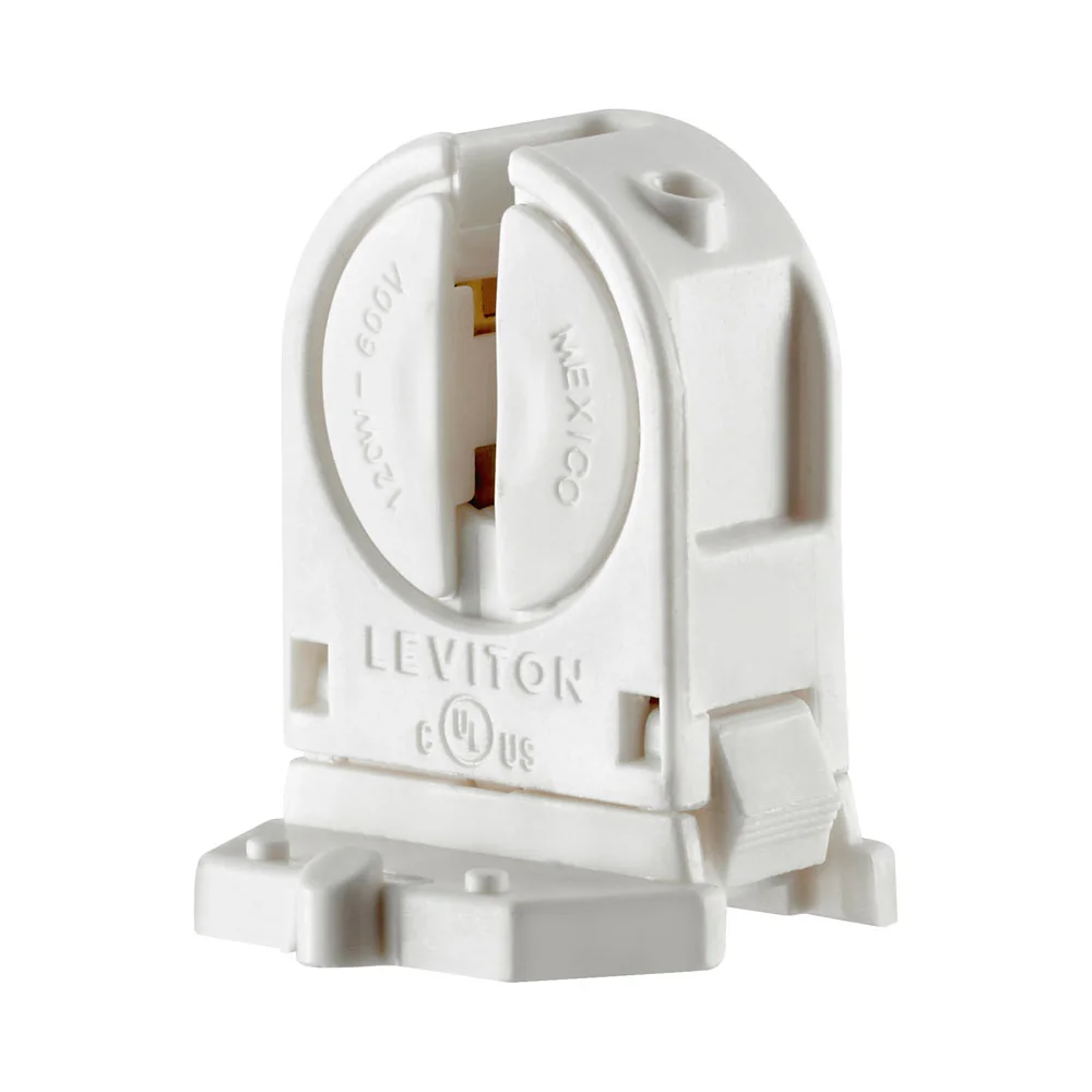LEVITON 13654-SWP Standard Lampholder, 120 W, 600 VAC, Bi-Pin Miniature Fluorescent Lamp, White