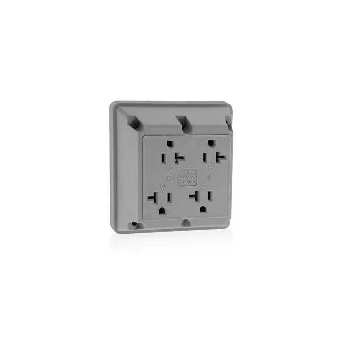 LEVITON 21254-GY Extra Heavy Duty Grounding Straight Blade Receptacle, 1 Phase, 125 VAC, 20 A, 2 Poles, 3 Wires, Gray