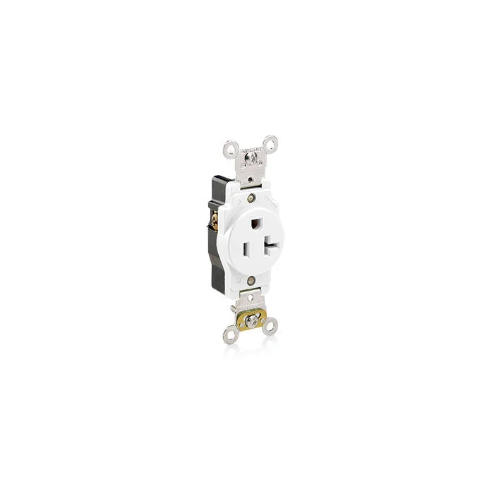 LEVITON 5361-W Straight Blade Single Receptacle, 125 VAC, 20 A, 2 Poles, 3 Wires, White, Thermoplastic