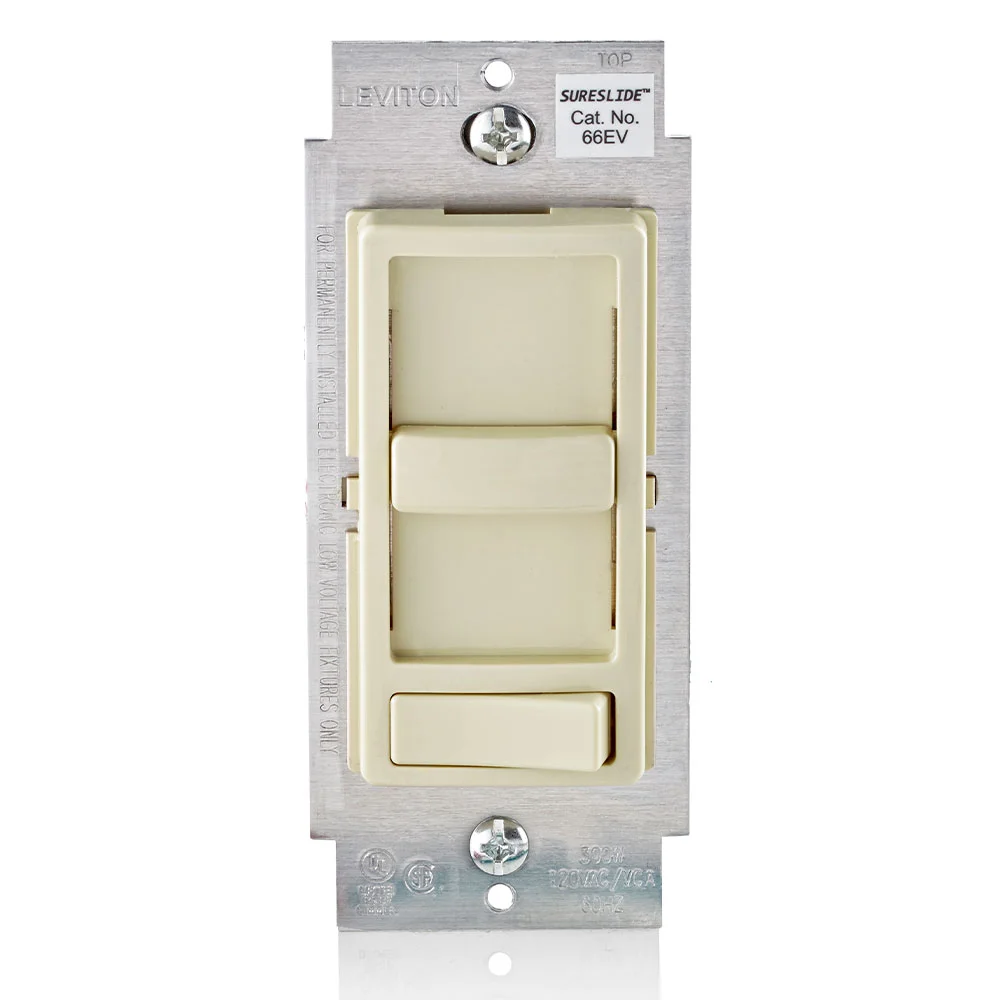 LEVITON 66EV-10I Electro-Mechanical Single Gang Low Voltage Dimmer, 120 VAC, 1 Pole, On/Off Operation, Ivory, 3 Way