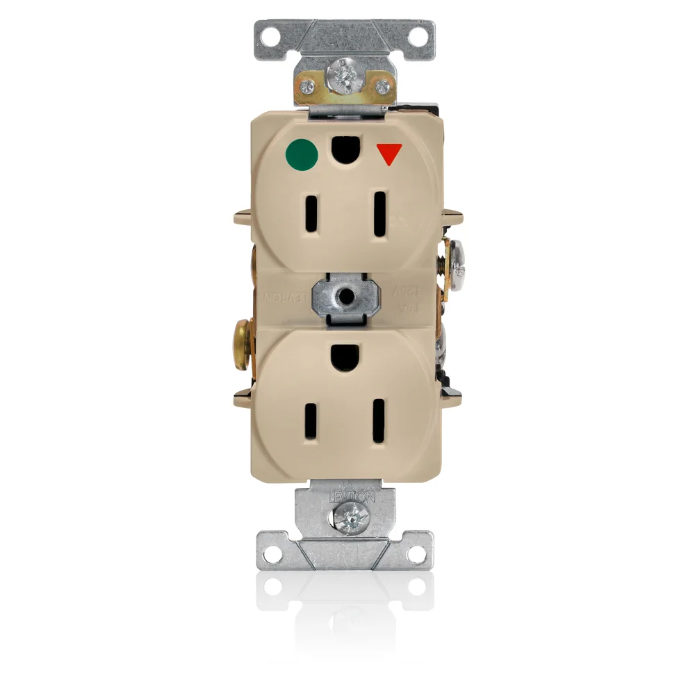 LEVITON 8200-IGI Heavy Duty Isolated Ground Narrow Body Duplex Receptacle, 125 VAC, 15 A, 2 Poles, 3 Wires, Ivory