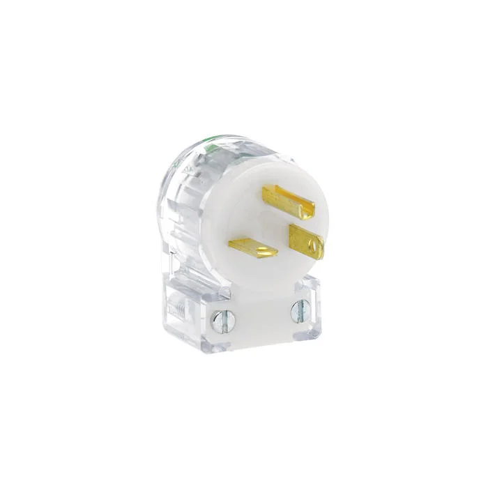 LEVITON 8315-CAT Angled Cable Mount Grounding Straight Blade Plug, 125 VAC, 20 A, 2 Poles, 3 Wires, Transparent
