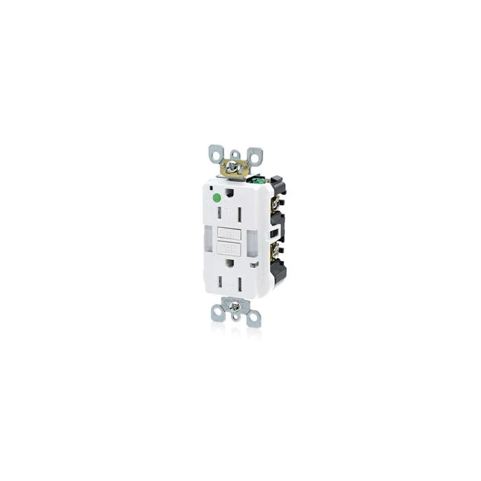 LEVITON GFNL1-HGW Slim Guide Light Self-Test GFCI Receptacle, 125 VAC, 15 A, 2 Poles, 3 Wires, White