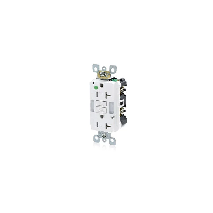 LEVITON GFNL2-HGW Duplex Feed Through Guidelight Self Test Slim Tamper Resistant GFCI Receptacle, 125 VAC, 20 A, 2 Poles, 3 Wires, White