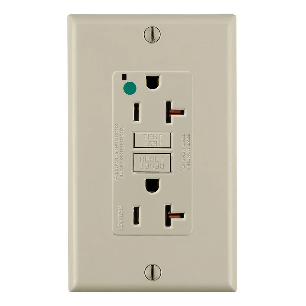 LEVITON GFNT2-HGI Self-Test GFCI Receptacle, 125 VAC, 20 A, 2 Poles, 3 Wires, Ivory, Polycarbonate / PBT